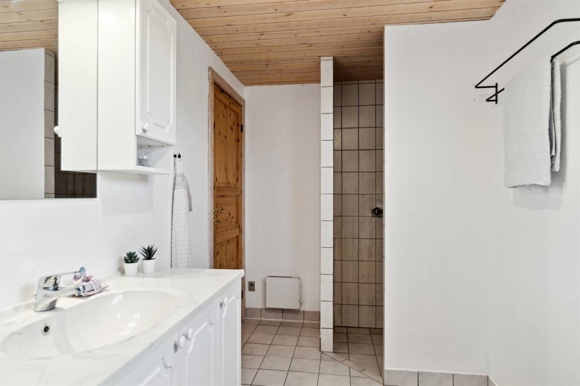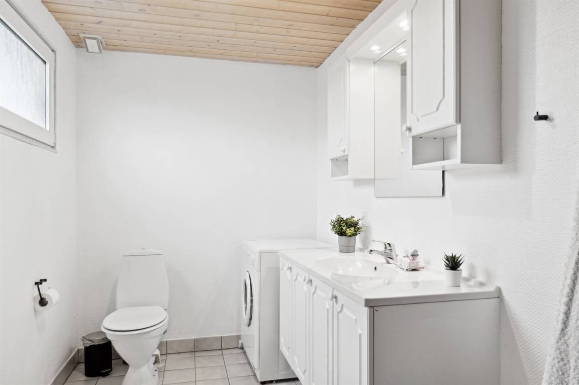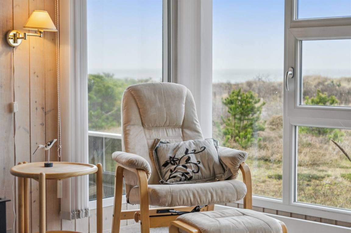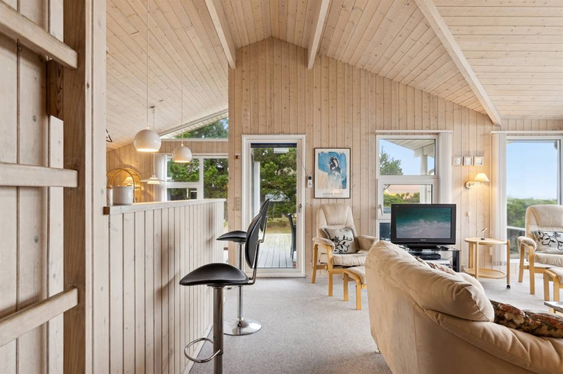 Der Mittelpunkt des Hauses ist das große Wohnzimmer, in dem die großen Fenster für einen wirklich guten Lichteinfall sorgen und von wo aus du die schöne Aussicht genießen kannst. Vom Wohnzimmer hast du außerdem direkten Zugang zur herrlichen Terrasse.