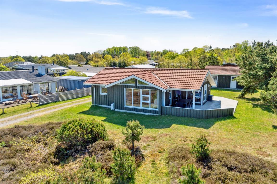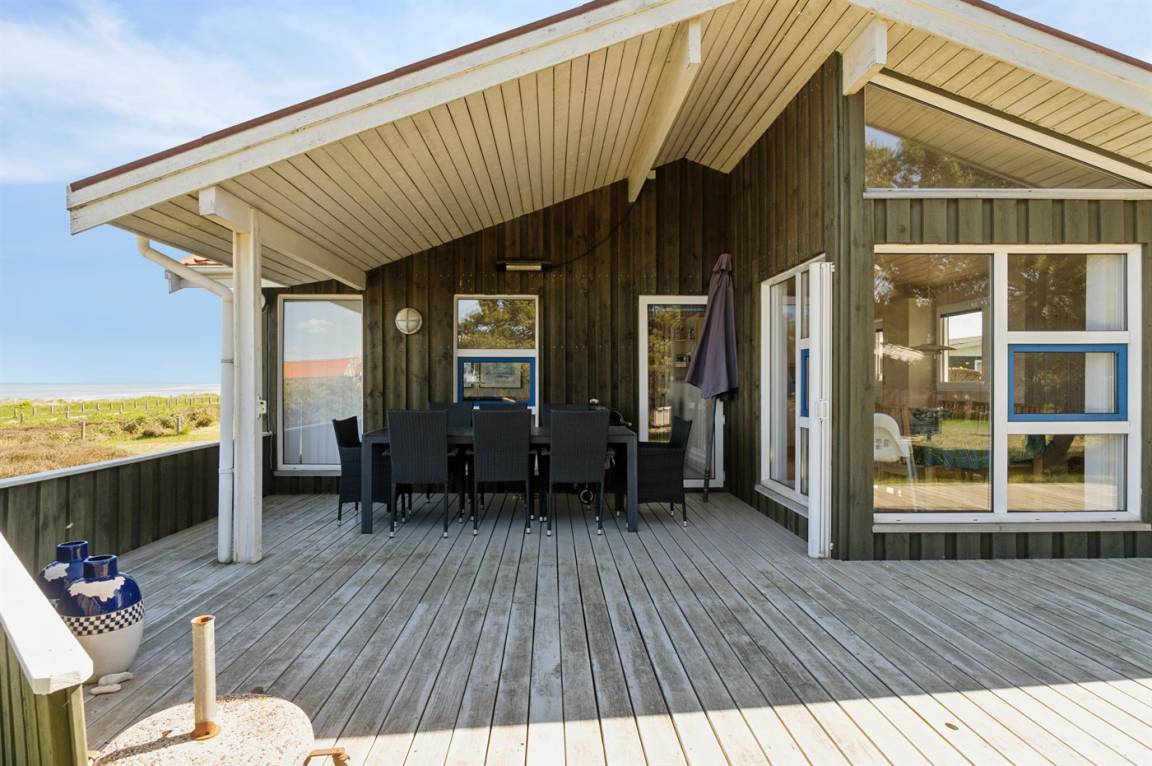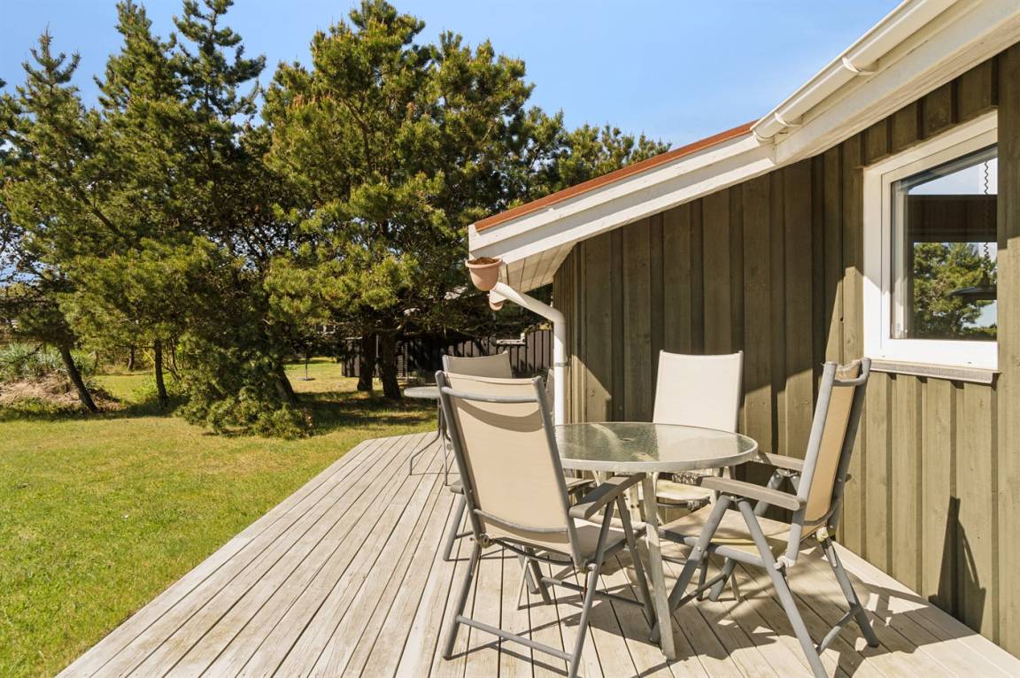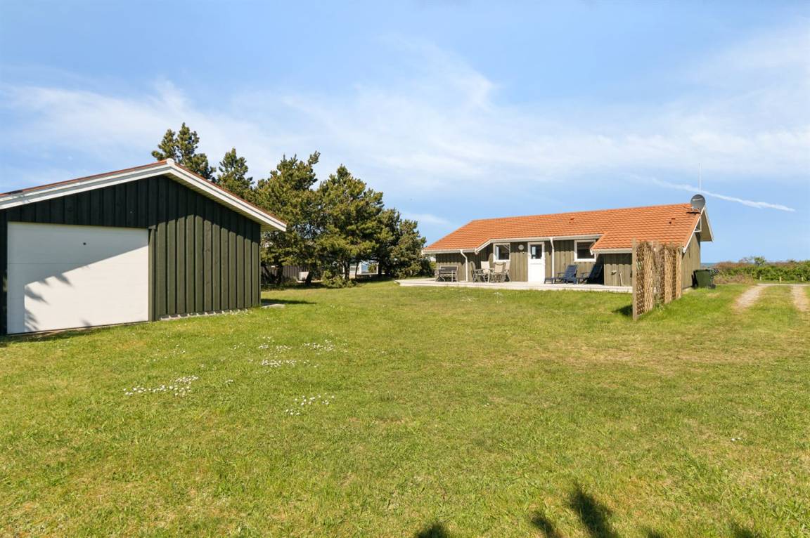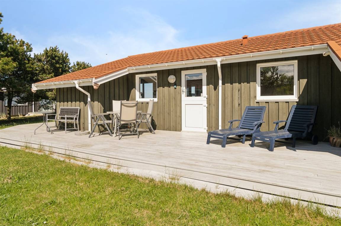 Das Ferienhaus liegt auf einem großen und schönen Grundstück, das leicht zu überblicken ist, sodass du den Kindern beim Spielen zusehen und im Auge behalten kannst. Von der großen, teilweise überdachten Terrasse aus kannst du den ganzen Tag die Sonne verfolgen und immer ein windgeschütztes Plätzchen finden – hier kannst du die Ruhe in vollen Zügen genießen.