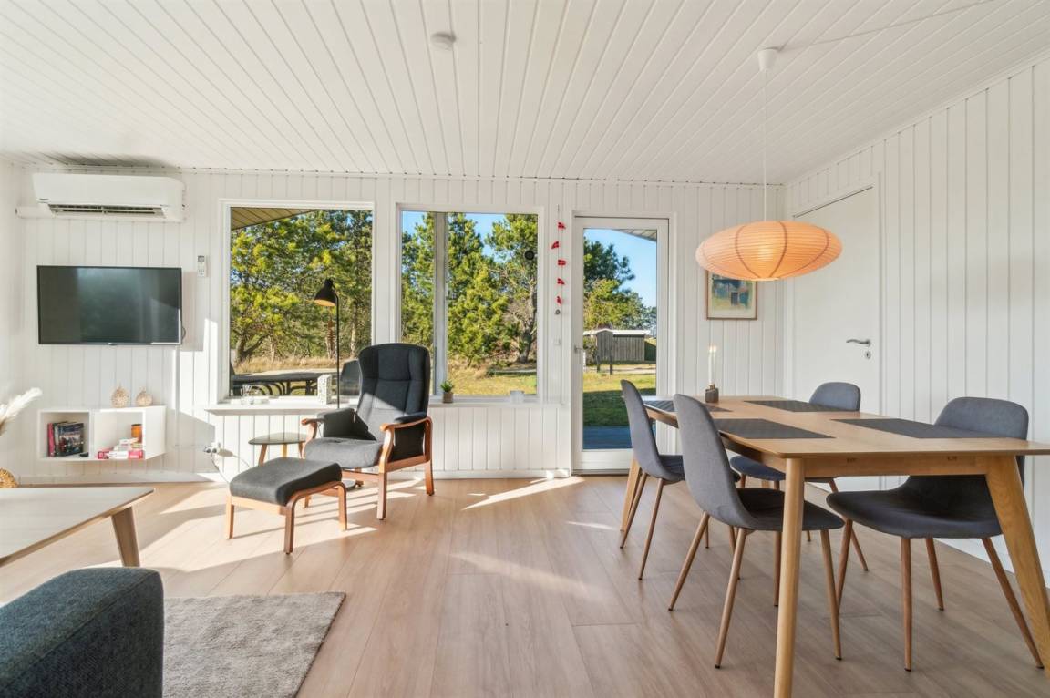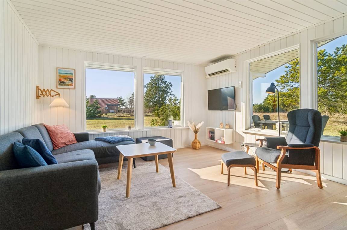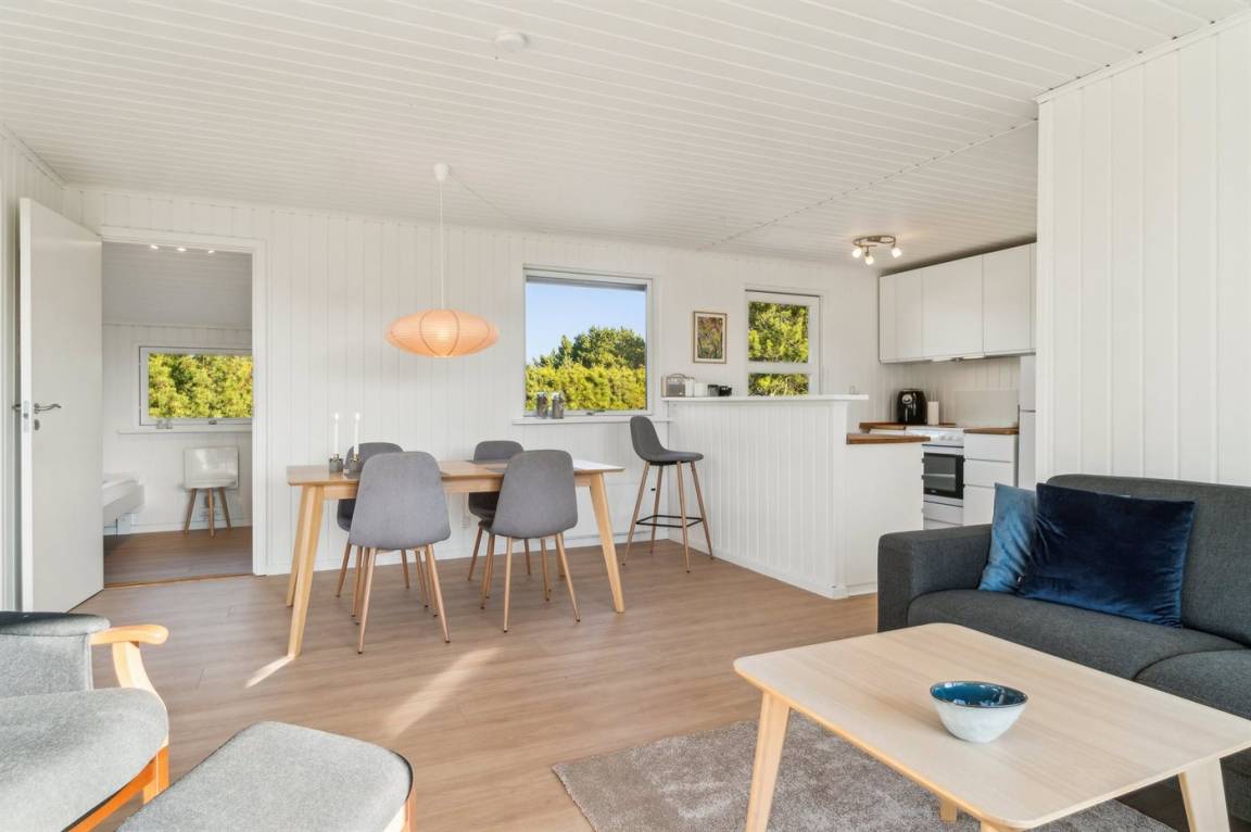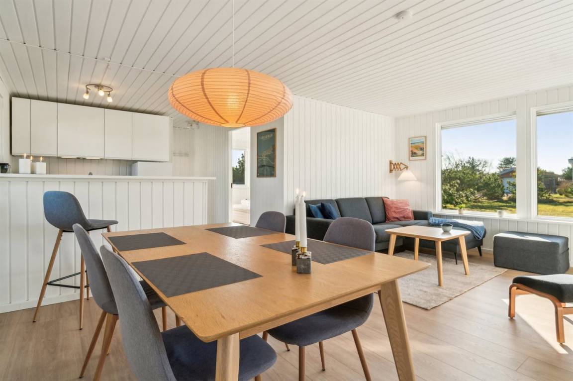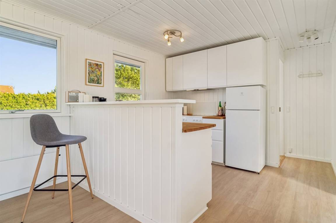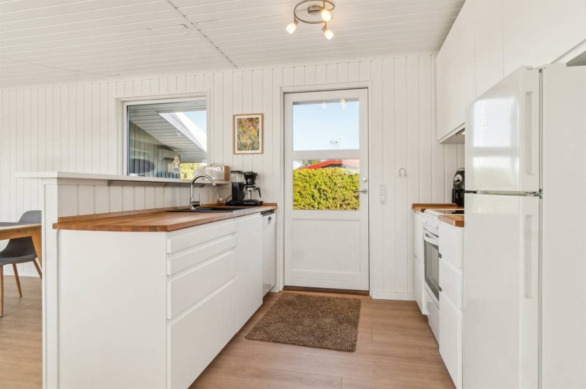 Innen präsentiert sich das Ferienhaus hell und modern mit einer feinen Einrichtung, die z.B. einer Familie mit Kindern sehr gut passt, und es gibt die Möglichkeit, die Großeltern mit in den Urlaub einzuladen. Der Mittelpunkt des Hauses ist der schöne Küchen-Wohnbereich, der mit dem Wohnzimmer kombiniert ist, wo die vielen Fenster für einen guten Lichteinfall sorgen. Vom Wohnzimmer aus gibt es direkten Zugang zur Terrasse.