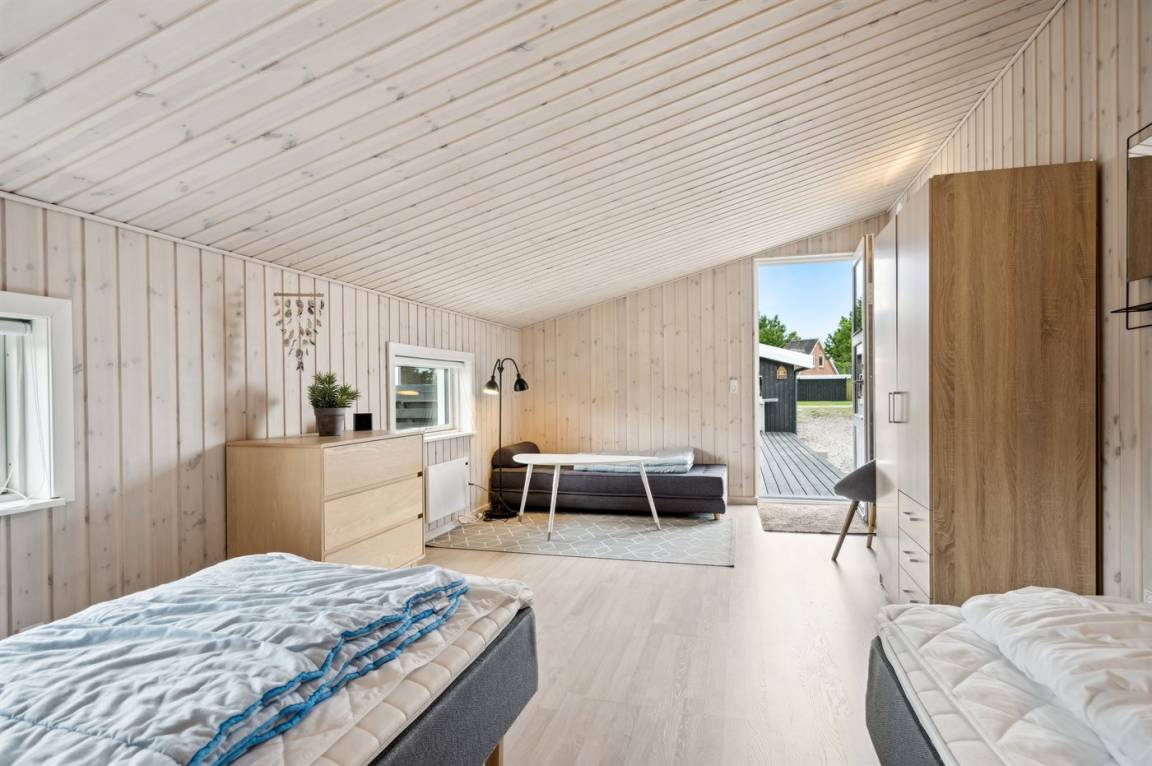 Das Ferienhaus liegt auf einem großen und schönen Grundstück, das sich hervorragend für Ballspiele und das Spielen mit den Kindern eignet. Von den guten Terrassenbereichen, die teilweise überdacht sind, kannst du den ganzen Tag der Sonne folgen und immer eine windgeschützte Ecke finden – hier kannst du die Ruhe in vollen Zügen genießen.