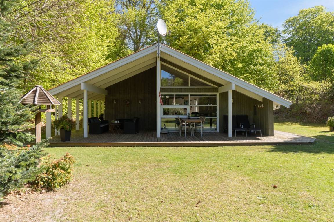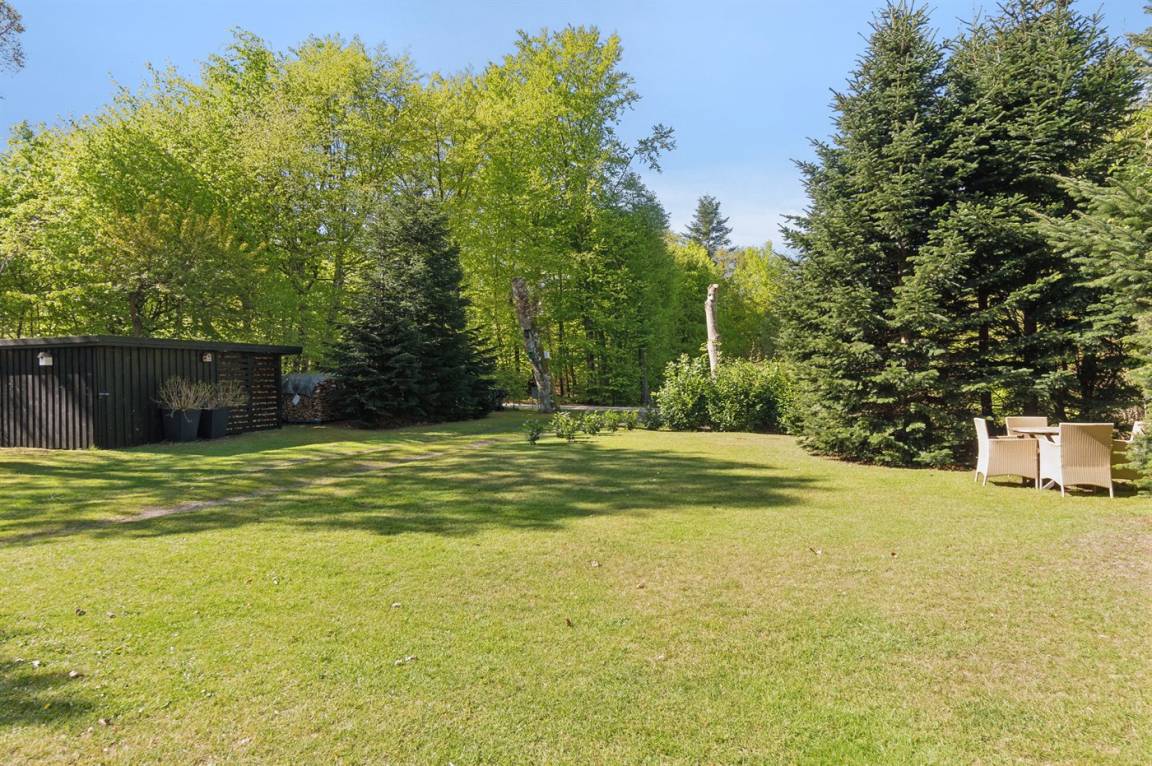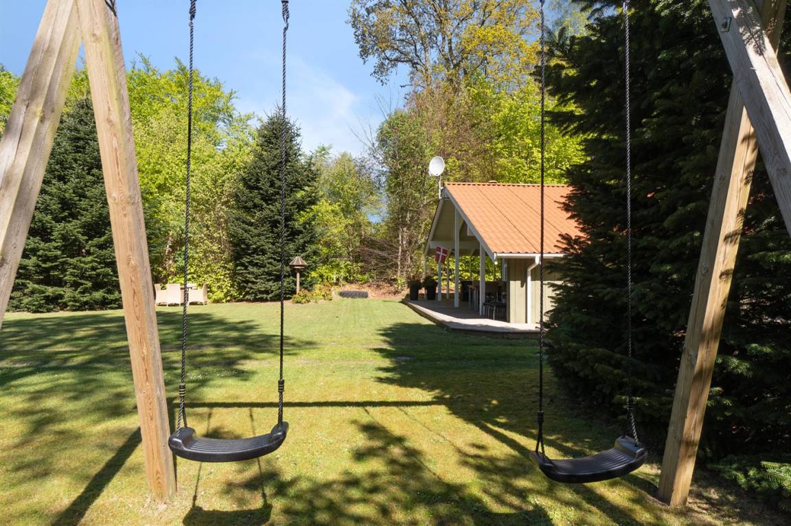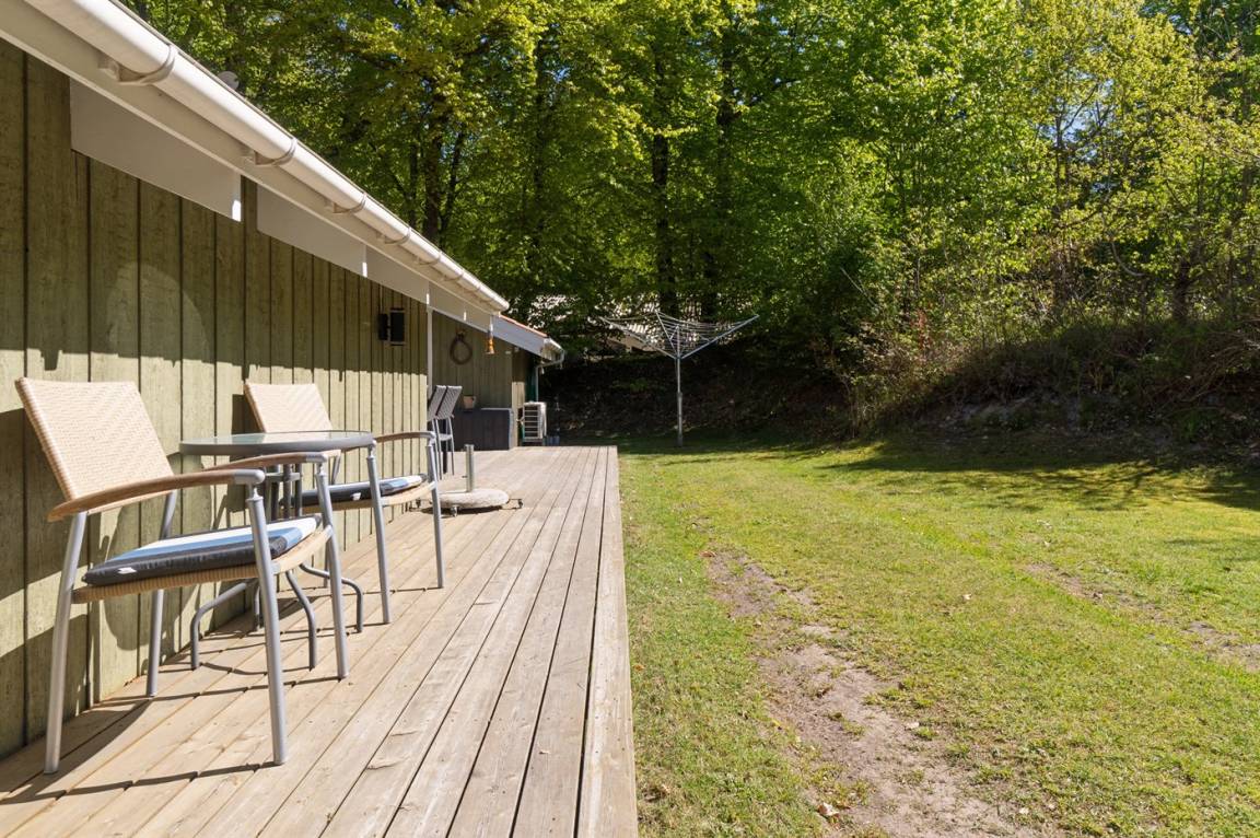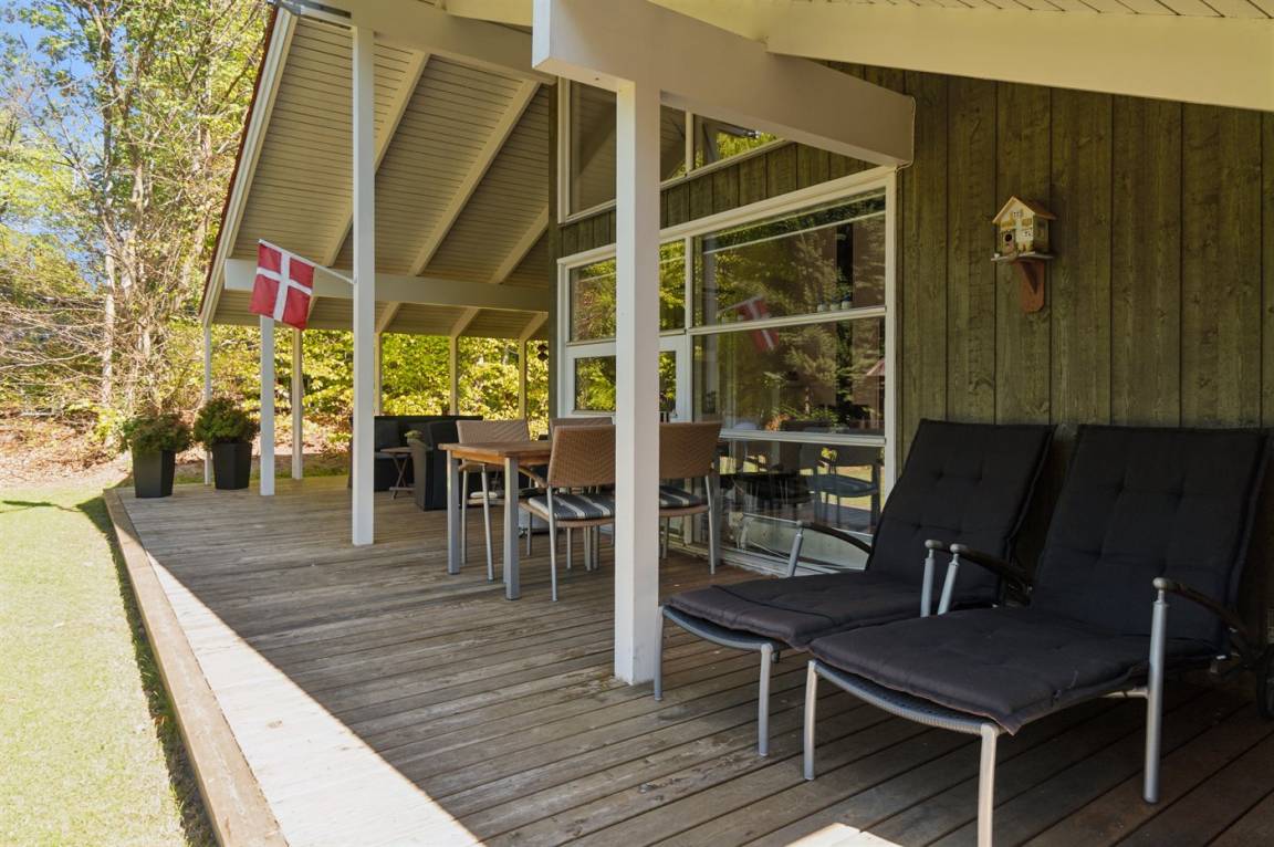 Das Ferienhaus liegt völlig ungestört auf einem großen, schönen Grundstück, von dem aus man einen guten Überblick über den Garten hat, während die Kinder spielen. Von der großen, teilweise überdachten Terrasse aus kann man die Sonne den ganzen Tag über genießen und immer einen windgeschützten Platz finden – hier kann man die Ruhe in vollen Zügen genießen.