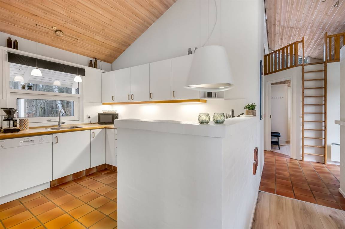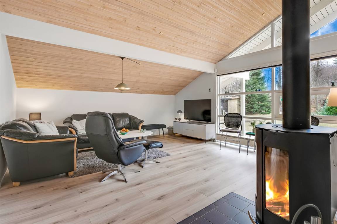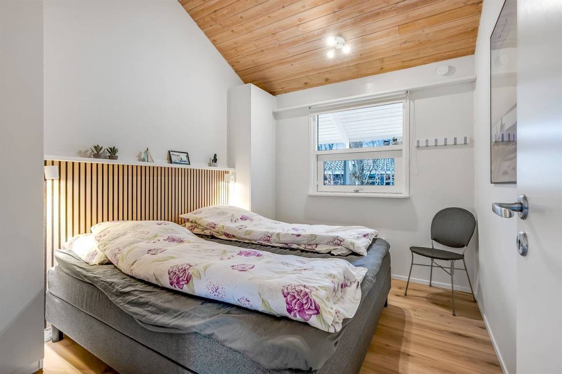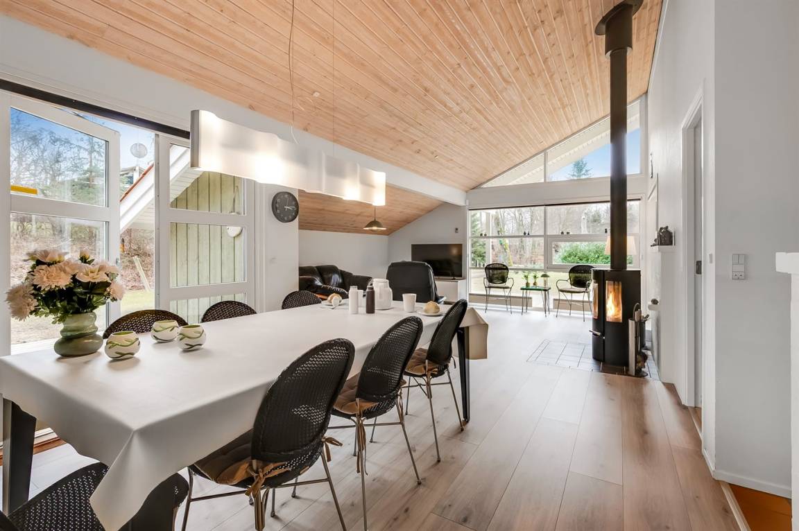Im Inneren präsentiert sich das Ferienhaus hell und modern mit einer guten Raumaufteilung, die z. B. ideal für eine Familie mit Kindern geeignet ist. Zudem besteht die Möglichkeit, Großeltern oder weitere Gäste einzuladen. Der Mittelpunkt des Hauses ist die große, schöne Wohnküche, die mit dem Wohnzimmer kombiniert ist. Die großen Fensterpartien sorgen für einen fantastischen Lichteinfall. Vom Wohnzimmer aus hat man direkten Zugang zur herrlichen Terrasse.