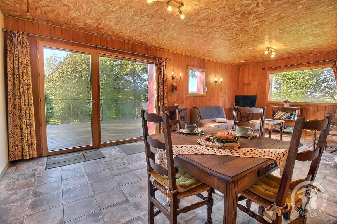 Durch die großen Öffnungen haben Sie direkten Zugang zur Terrasse. Ideal, um Mahlzeiten zu genießen und dabei die atemberaubende Aussicht auf die umliegende Natur zu bewundern.