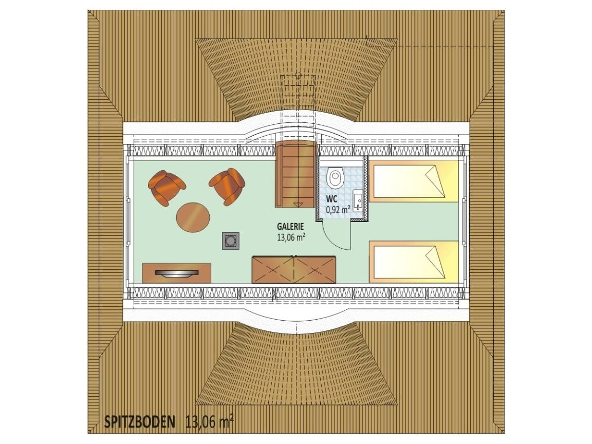 5 Schlafzimmer mit insgesamt 9 Betten und zwei Kinderbetten, 2 Bäder und ein Gäste WC im Spitzdach ; Kamin und