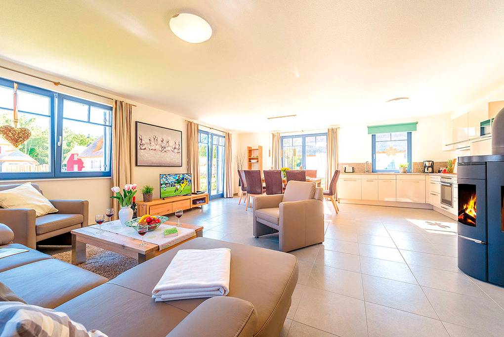 Nebenkosten: Endreinigung 193 € zzgl. Kurtaxe. Bettwäsche, Handtücher leihbar 25 €/Pers (Bestellung). Zusätzliche Leistungen: Kostenloser Internetzugang über W-Lan. 2 Pkw-Stellplätze im Preis inklusive. Kaution 250 €. Babybett/Hochstuhl zusätzlich zur maximalen Personenzahl, jeweils ohne Berechnung. Haustier nicht erlaubt.Räume & Aufteilung