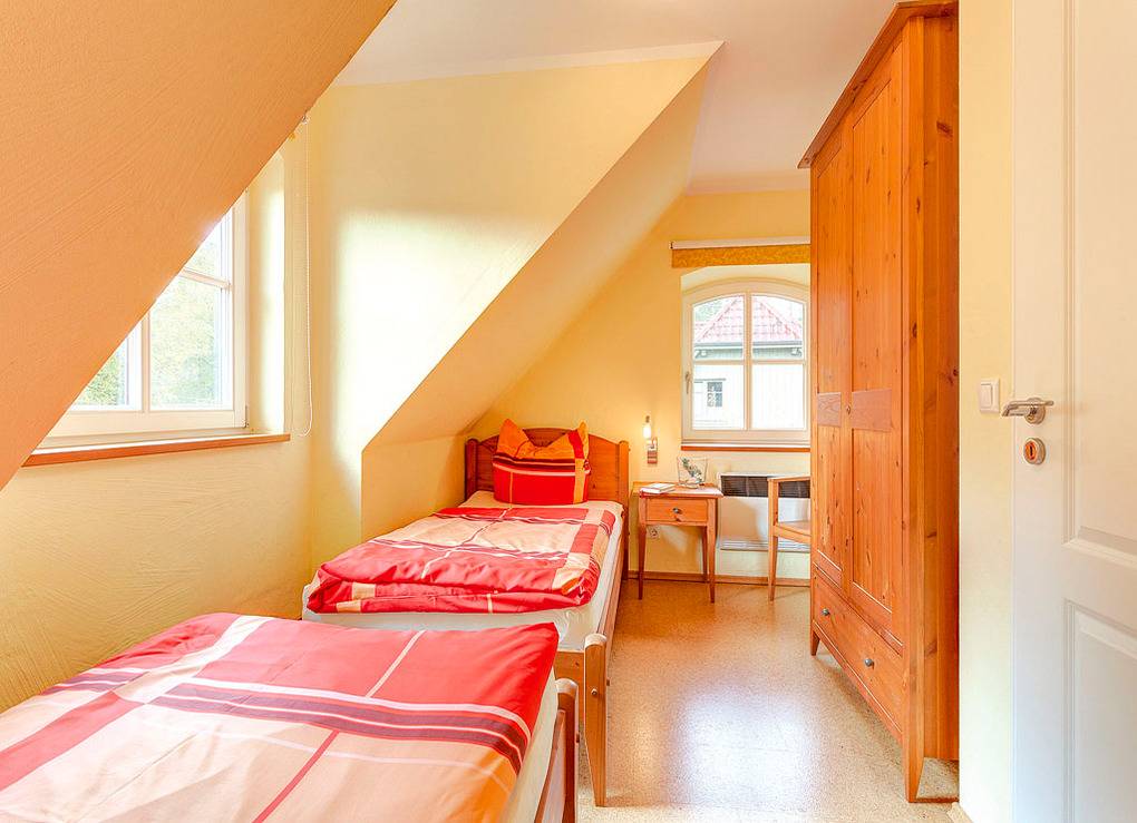 D 120.6 Ferienhaus 2-4 Pers.: Ansprechende 3-Zimmerhaushälfte mit 60 Wohnfläche über 2 Etagen. Parterre: Wohn-/Essraum mit Kaminofen, Couchgarnitur, Sat-TV, Radio-CD, Esstisch, moderner Einbauküche (Backofen, Spülmaschine). Bad/WC. 1. Etage: Doppelzimmer. 2-Bettzimmer.