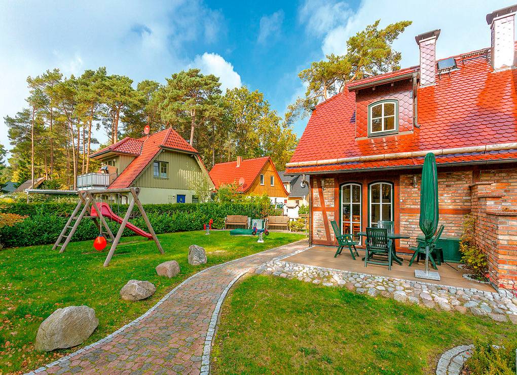 Haus: Zwei hintereinander liegende Doppelhäuser auf einem großen, abgeschlossenem, eingezäuntem Grundstück (1200 qm). Komfortable, nahezu identische Haushälften mit Kamin und Sauna. Moderne, geschmackvolle Einrichtung. E-Zentralheizung. Terrasse mit Sitzmöbeln. Zur gemeinschaftlichen Nutzung: Blockbohlenhaus mit Sauna, Dusche. Gepflegter Garten mit 2 Grillplätzen, rustikalen Tischen, Bänken. Kleiner Spielplatz mit Schaukel, Rutsche, Sandkasten. 1 Pkw-Stellplatz pro Haushälfte.