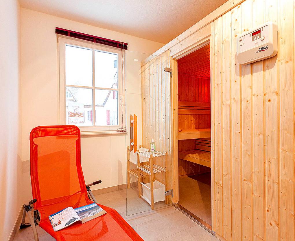 D 120.16 Ferienhaus 2-8 Pers.: Komfortables 6-Zimmerhaus mit 120 qm Wohnfläche über 2 Etagen. Parterre: Gemütlicher Wohn-/Essraum mit Kaminofen, Couchgarnitur, Sat-TV, DVD, Radio-CD, Esstisch, sehr gut ausgestatteter Einbauküche (Backofen, Mikrowelle, Spülmaschine). Saunaraum mit Waschmaschine. Bad/WC. 1. Etage: Vier Doppelzimmer, davon zwei mit Sat-TV. Bad mit Bw, Du, Wb, WC.