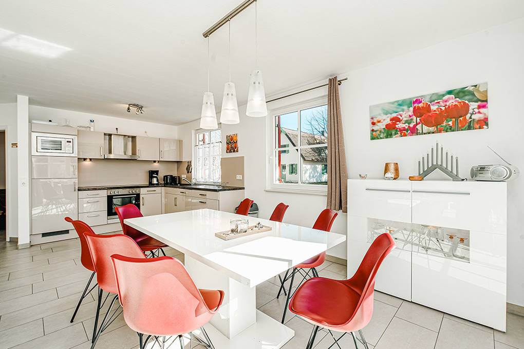 Nebenkosten: Endreinigung 160 € (wird bei Buchung erhoben) . Strom, Wasser, Heizung 2,70 €/Pers./Nacht (werden bei Buchung erhoben). Kurtaxe. Bettwäsche, Handtücher leihbar 23 €/Pers (Bestellung, wird bei Buchung erhoben). Zusätzliche Leistungen: Kostenloser Internetzugang über W-Lan. 2 Pkw-Stellplätze im Preis inklusive. Kaution 250 €. Kinder Babybett/Hochstuhl zusätzlich zur maximalen Personenzahl, jeweils ohne Berechnung. Haustier 12 €/Nacht, max. 2 Hunde (Anmeldung, wird bei Buchung erhoben).Räume & Aufteilung