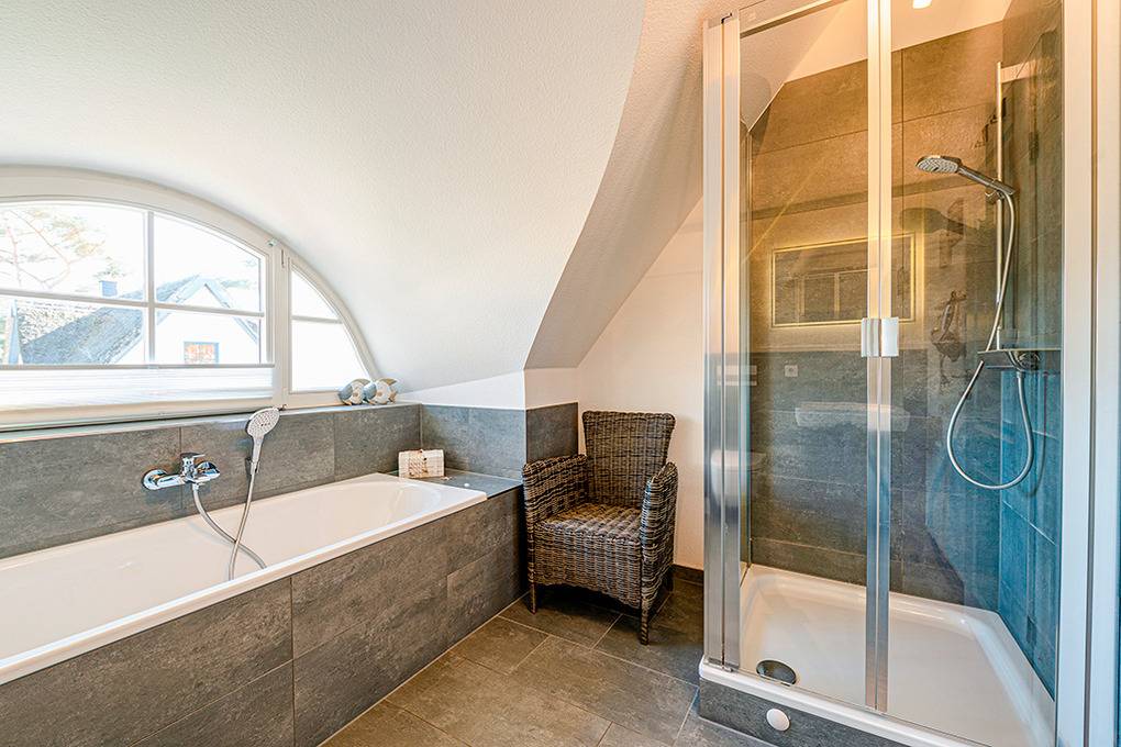 Haus: Exklusives Reetdachhaus mit Sauna und Kaminofen, 2014 neu erbaut. Nichtraucherhaus. Gehobene Ausstattung mit moderner, geschmackvoller Einrichtung. Kostenloser Internetzugang über W-Lan. Alle Schlafzimmer mit Fliegengitterrollos. Fußbodenheizung. Terrasse mit Sitzmöbeln, Strandkorb, Grill. Gartenhaus, Abstellmöglichkeit für Fahrräder. 2 Pkw-Stellplätze am Haus.