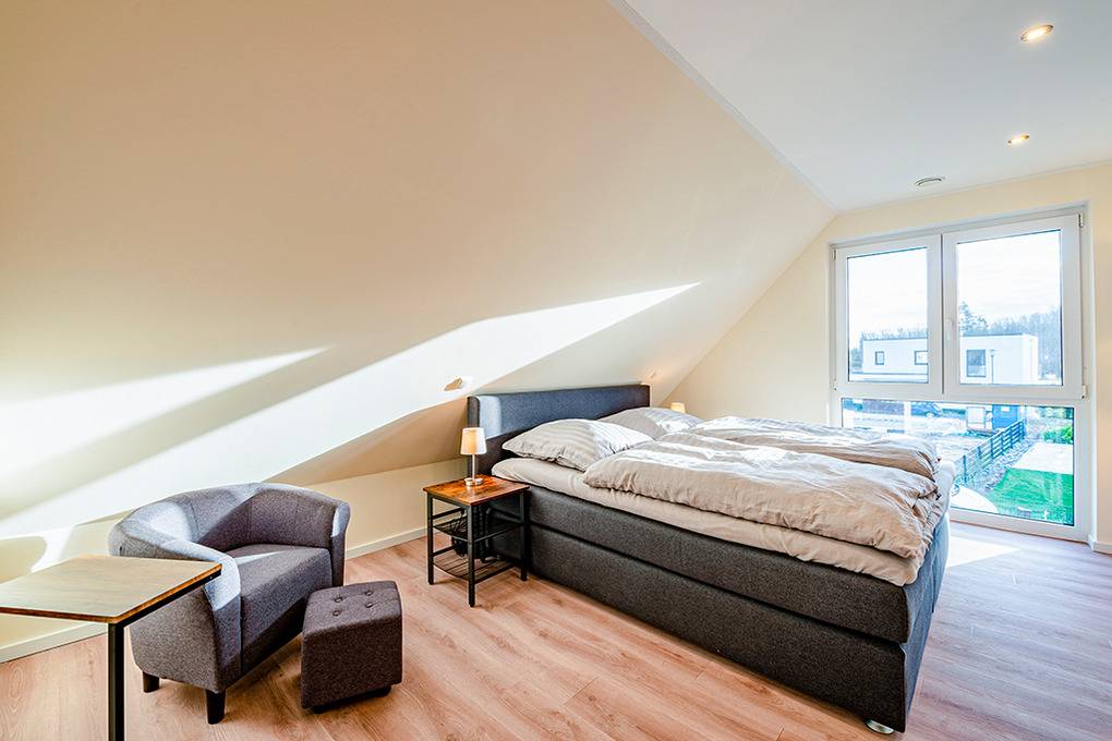 Haus: Zwei exklusive, neu erbaute Doppelhaushälften mit Reetdach, Kaminofen und Sauna. Eingeschränkter Meerblick. Großzügiges Nichtraucher-Ferienhaus mit komfortabler Ausstattung und hochwertiger Möblierung. 4 Schlafzimmer, 3 Bäder! Alle Schlafzimmer mit Fliegenschutz, Jalousien. Internetanschluss (W-Lan). Fußbodenheizung. Terrasse mit Sitzmöbeln. Ladestation für E-Autos (Gebühr). 2 Pkw-Stellplätze/Haus vorhanden.