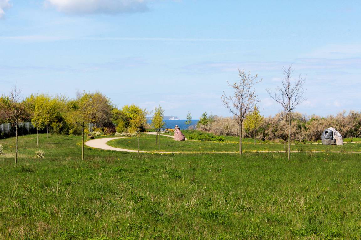Der feine aufgespülte Sandstrand bildet eine riesige natürliche Badebucht, die durch die Ortschaften Glowe und Juliusruh begrenzt wird. Diese fast 12 km lange Nehrung wurde vom Meer geformt und bildet nun einen sichelförmigen, feinsandigen bis grobkieseligen Strand auf der Ostseeinsel Rügen. Weiterhin trennt dieser den Großen Jasmunder Bodden & Breeger Bodden auf der einen Seite von der Ostsee auf der anderen Seite. Inmitten dessen befinden sich fantastische Wälder. Die Umgebung ist ideal für einen entspannten Familienurlaub, welche schnell mittels eines Autos erreichbar ist (bspw. aus Berlin).