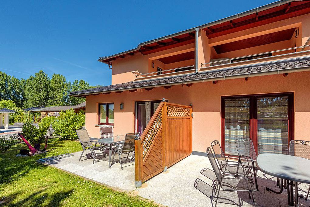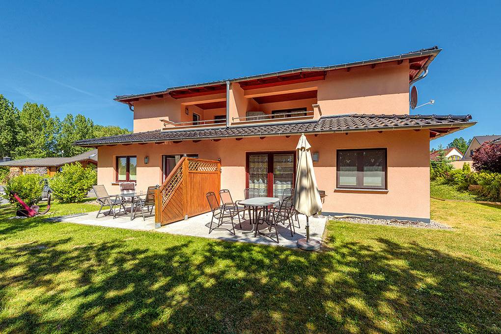 Haus: Modernes Ferienhaus mit vier komfortablen Ferienwohnungen. Geschmackvolle Einrichtung. Fußbodenheizung. Kostenloser Internetanschluss (W-Lan). Terrasse mit Sitzmöbeln. 1 Pkw-Stellplatz/Fewo.