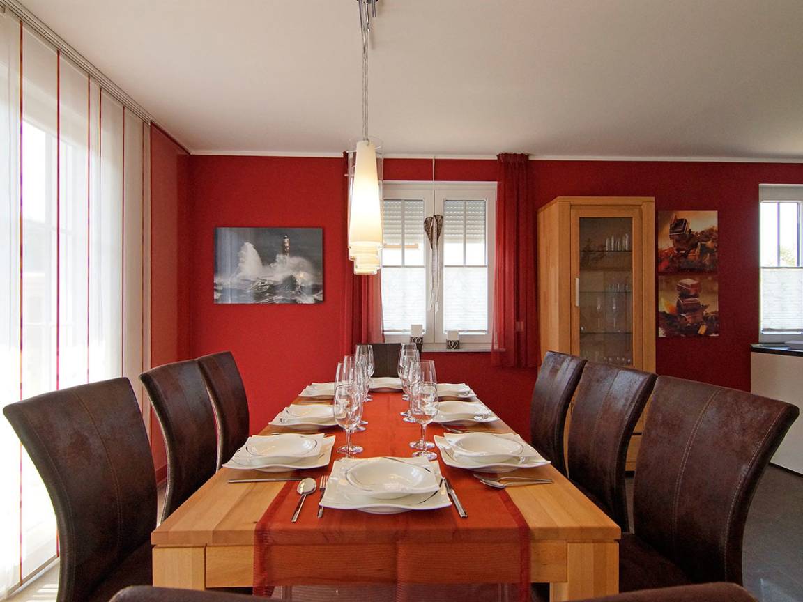 Der großzügige Wohn- und Essbereich sowie die offene Küche im Erdgeschoss schaffen eine gemütliche Atmosphäre. In der ersten Etage und im liebevoll ausgebauten Spitzboden finden bis zu 10 Personen bequeme Schlafmöglichkeiten. Hochwertige Betten garantieren eine erholsame Nachtruhe.