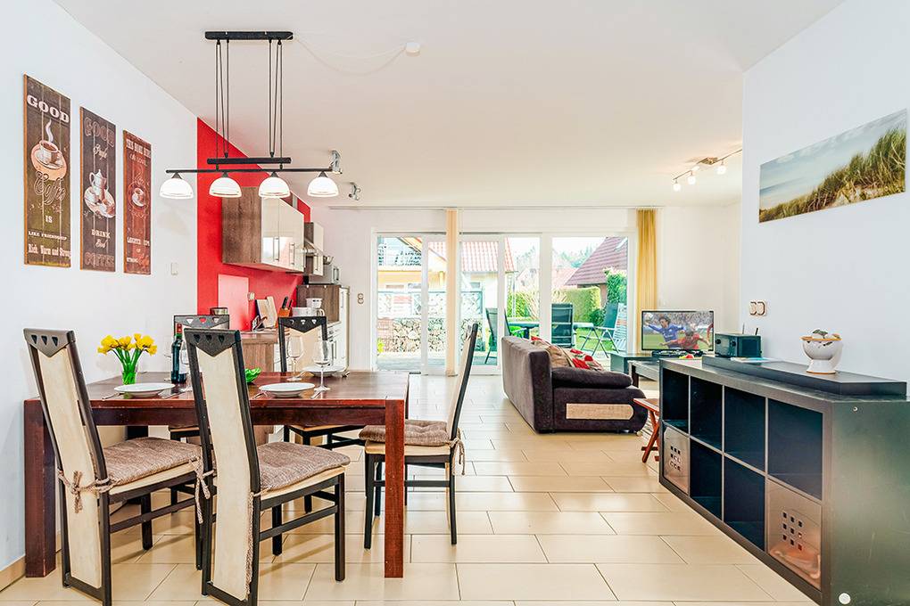 Ort: Glowe. Ruhige Lage in einer Wohnsiedlung. Ortsmitte mit Geschäften, Restaurants 500 m. Ostseestrand 700 m. Erlebniswelt "Splash" mit Schwimmbad, Sauna- und Wellnessbereich sowie Indoorspielplatz 7,5 km.