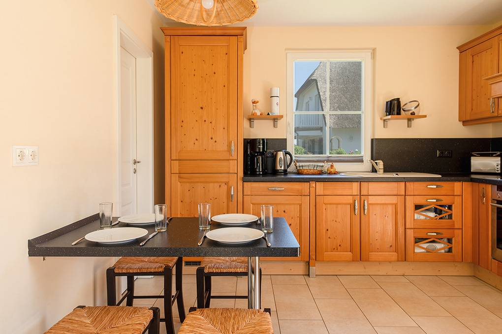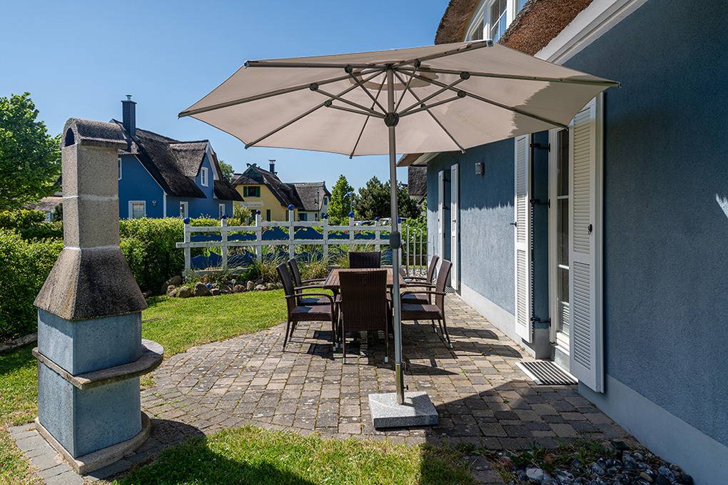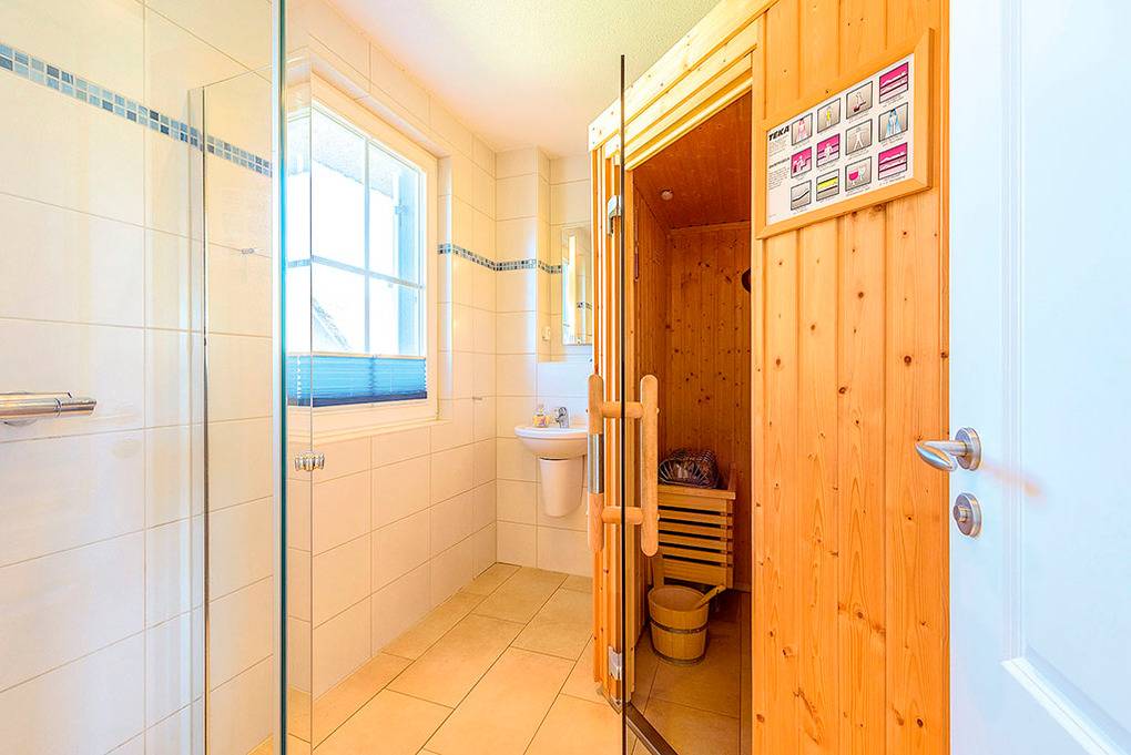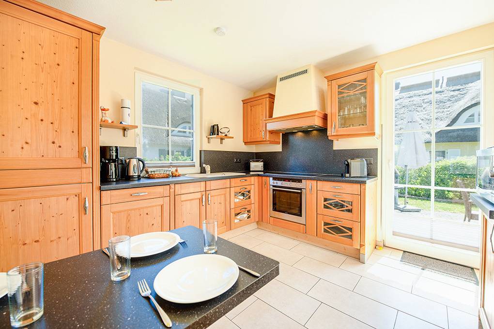Haus: Exklusives Reetdachhaus mit Sauna und Kaminofen. Nichtraucherhaus. Geschmackvolle Einrichtung, gehobene Ausstattung. Internetanschluss (W-Lan). Waschmaschine. Fußbodenheizung. Terrasse mit Grill, Sitzmöbeln, Strandkorb. Fahrradschuppen. 2 Pkw-Stellplätze am Haus.