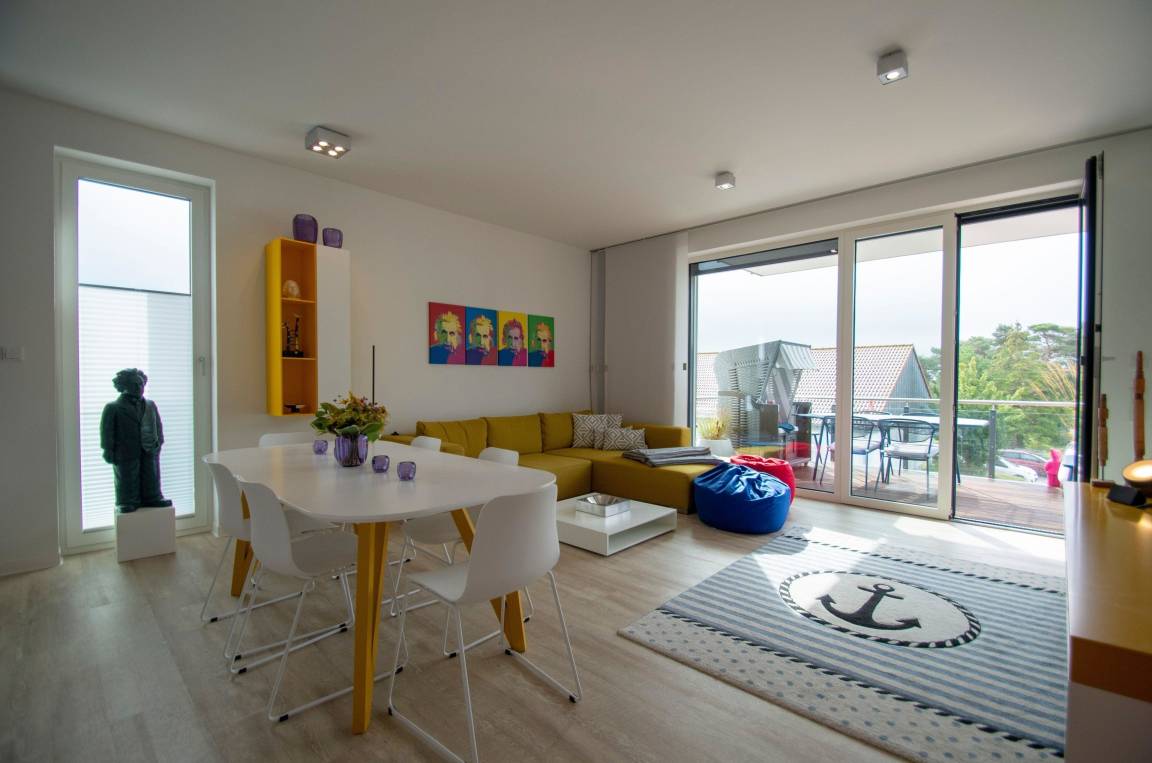 Individuell künstlerisch gestaltete lichtdurchflutete Räume, alle Fenster mit elektrischen Sonnenrollos ausgestattet. Die Betten im Albert-INN verfügen über hochwertige Matratzen und jeweils einen durchgehenden Topper für den excellenten Schlafkomfort, ganz wie zu Hause (Größe: 2 x 1,60 m und 1 x 1,80 m). Weiterer Platz für 2 Babybetten für Kinder bis 3 Jahre (kostenlos). Für die Unermüdlichen stehen im Albert-INN zwei Arbeitsplätze zur Verfügung und eine Exklusiv-Kooperation mit dem Coworking Space Lietzow. Alle Räume verfügen über ein kostenloses WLAN, Smart-TV der neusten Generation u.a. auch mit Netflix, AmazonPrime, Disney+. Das Wohnzimmer zum Chillen mit: großem Smart-TV, DVD-Player, Soundbar, Alexa, Bluetooth-Lautsprecher, NintendoWII, großem Essplatz, großem Eck-Schlafsofa (zusätzliche Schlafplätze a.A.). In der Küche finden alle Kochbegeisterten: eine Markenküche mit BOSCH-Einbaugeräten (Backofen mit Induktionskochfeld, Geschirrspüler, Mikrowelle) großen Kühlschrank mit Gefriermöglichkeit, Backutensilien, Nespresso + Milchaufschäumer, Mixer, WMF: Filterkaffeemaschine, Entsafter, Eierkocher, Wasserkocher, Smoothie-Shaker. Die beiden Bäder sind mit ebenerdigen Duschen hochwertig ausgestattet. Für die Kleinsten: Kinderspielboot und Playmobil Seeräuber warten auf große Abenteuer, Spiele, Bücher, Kleinkinderausstattung (Töpfchen, Treppchen, WC-Sitz, Hochstuhl, Kinderreisebetten mit Wickelauflage). Alle Räume mit hochwertigen Möbeln von deutschen Markenherstellern ausgestattet (Interlübke, Müllermöbel).