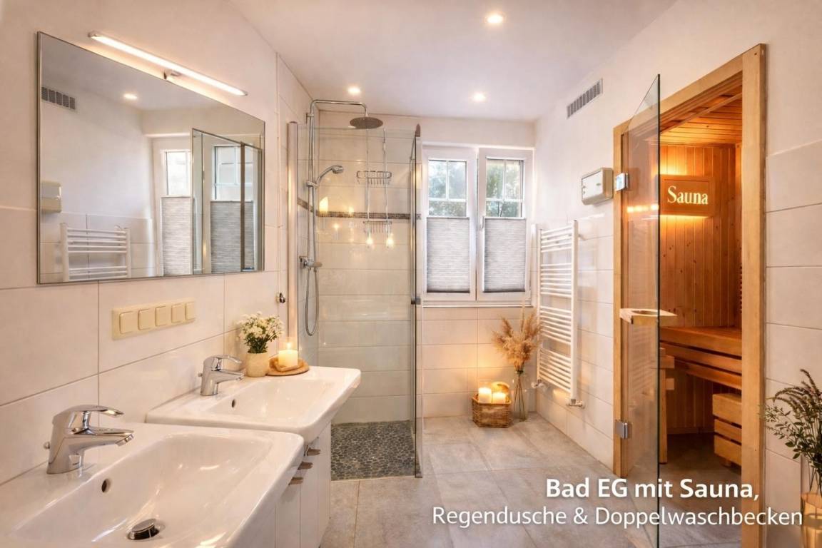 Traumhafte Auszeit an der Ostsee! Die Villa Mara liegt auf einem ruhigen Endgrundstück direkt am Waldrand in Glowe ; nur wenige Schritte vom 9 km langen Naturstrand & Schaabe; entfernt. 5 Schlafzimmer mit Flachbild-TV, Kamin, Whirlpool, kostenlose Sauna & schnelles Starlink-Internet ; perfekt für bis zu 11 Gäste und Ihren Hund.