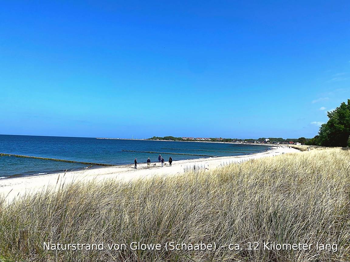 Nur wenige Schritte entfernt erstreckt sich der ca. 9 km lange Naturstrand Schaabe ein einzigartiger, naturbelassener Sandstrand zwischen Ostsee und Jasmunder Bodden. Hier genießen Sie kilometerlange Strandspaziergänge, unberührte Natur und herrliche Sonnenuntergänge. Im Garten der Villa Mara laden zwei Strandkörbe in einer gemütlichen Sandkuhle dazu ein, Sonne und Meerbrise zu genießen.