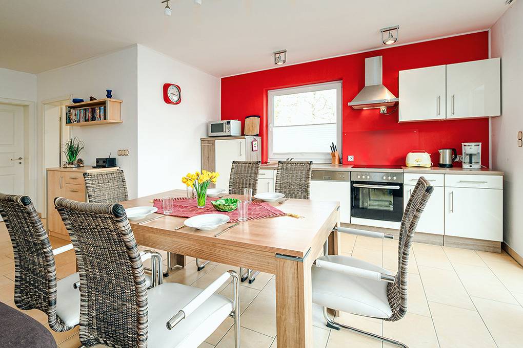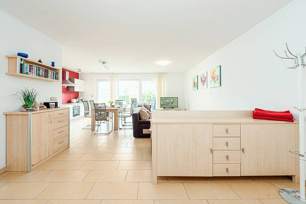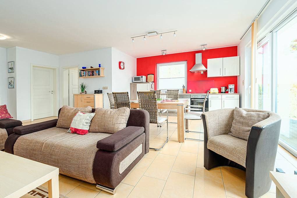 Nebenkosten Endreinigung 80 € (wird bei Buchung erhoben). Kurtaxe. Bettwäsche, Handtücher leihbar 23 €/Pers (Bestellung, wird bei Buchung erhoben). Kostenloser Internetzugang über W-Lan. 1 Pkw-Stellplatz im Preis inklusive. Kaution 150 € (wird bei Buchung erhoben). Babybett/Hochstuhl zusätzlich zur maximalen Personenzahl, jeweils ohne Berechnung (Bestellung). Haustier nicht erlaubt.Räume & Aufteilung