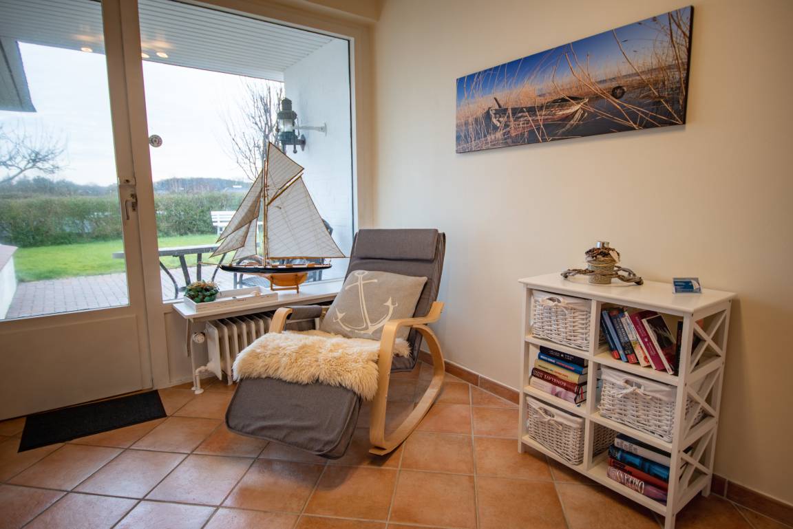 Der Garten ist ein wahres Paradies für Naturliebhaber. Genießen Sie den herrlichen Blick über das Noor bis zur malerischen Außenförde. Lassen Sie die Seele baumeln und finden Sie Ihre innere Ruhe in diesem idyllischen Umfeld. Auf einer großzügigen Wohnfläche von 100 m² verteilt, bietet die Ferienwohnung zwei sich voneinander abhebende Schlafzimmer. Das eine Schlafzimmer ist mit einem komfortablen Doppelbett (180 x 200cm) ausgestattet, während das andere Zimmer über zwei gemütliche Einzelbetten (90x200cm) verfügt. Der moderne Wohlfühlbereich wird durch ein Tageslicht-Bad mit Badewanne und Dusche sowie ein Gäste-WC komplettiert.