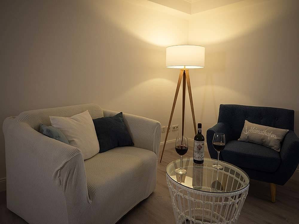 Im Wohnzimmer erwartet Sie ein modernes und helles Raumkonzept, das Gemütlichkeit und Funktionalität vereint. Hier befindet sich eine hochwertige Schlafcouch, die zusätzlichen Platz für Gäste oder für eine angenehme Nachtruhe bietet. Der großzügige Essbereich lädt zu gemeinsamen Mahlzeiten ein, während das gemütliche Sofa zu entspannten Stunden nach einem erlebnisreichen Tag einlädt. Ein Fernseher sorgt für Unterhaltung, und dank der Internet-Flatrate sind Sie immer mit der Welt verbunden. Genießen Sie den Blick auf die Flensburger Förde und lassen Sie sich von der einzigartigen Atmosphäre der Umgebung verzaubern.