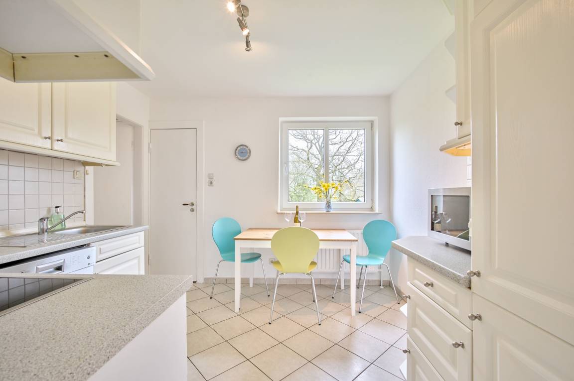 Die Küche ist ein wahres Highlight für alle, die es lieben, zu kochen. Sie ist vollständig ausgestattet mit einem Cerankochfeld, einem Backofen, einem Kühlschrank mit 4-Sterne-Gefrierfach, einer Spülmaschine, einer Mikrowelle, einer Kaffeemaschine und einem Wasserkocher. Hier können Sie nicht nur leckere Mahlzeiten zubereiten, sondern dabei auch den herrlichen Blick auf das angrenzende Naturschutzgebiet genießen. Das Kochen in dieser lichtdurchfluteten, modernen Küche wird zu einem echten Vergnügen – und die frischen Zutaten aus der Region machen die Zubereitung noch besonderer.