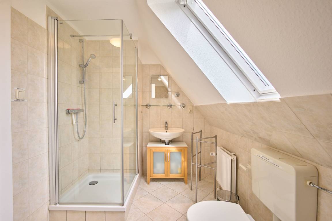 Im Obergeschoss des Hauses befinden sich die Schlafzimmer, die Ihnen einen ruhigen und erholsamen Rückzugsort bieten. Zwei der Schlafzimmer sind jeweils mit einem komfortablen Doppelbett ausgestattet, in dem Sie nach einem ereignisreichen Tag schnell in einen erholsamen Schlaf sinken können. Das dritte Schlafzimmer verfügt über ein Schlafsofa und bietet ebenfalls Platz für weitere Gäste. Alle Schlafzimmer sind liebevoll eingerichtet und strahlen eine behagliche Atmosphäre aus. Das Tageslichtbad im Obergeschoss ist ein weiterer Ort der Entspannung. Mit einer Dusche, einer Badewanne, einem Waschbecken und einem WC ausgestattet, können Sie sich hier nach einem erlebnisreichen Tag erfrischen oder sich in der Badewanne verwöhnen lassen.