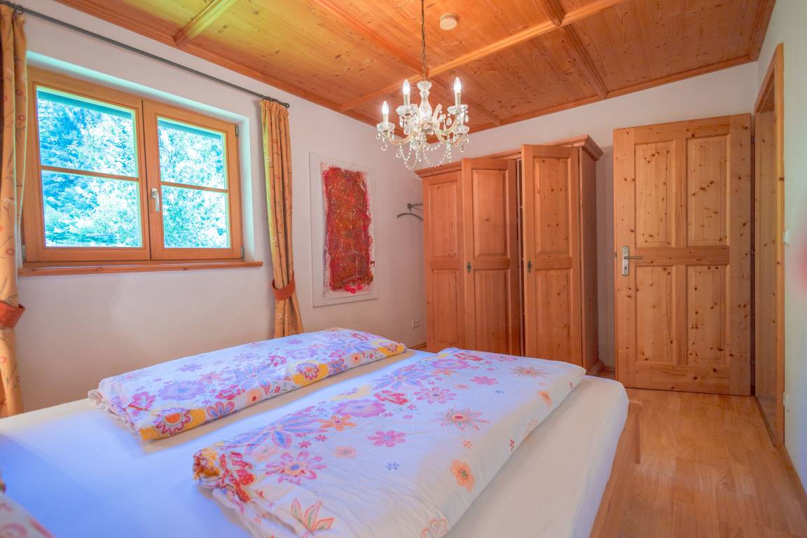 Die Wohnung verfügt über 2 Zimmer, darunter ein gemütliches Schlafzimmer mit einem bequemen Doppelbett. Die Einrichtung ist durch Holzmöbel geprägt, die eine warme und einladende Atmosphäre schaffen.