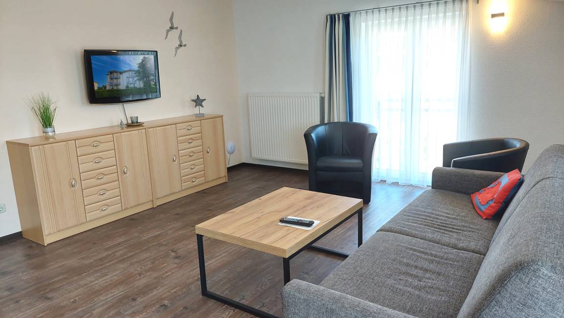 Diese freundliche Wohnung ist aufgeteilt in einen Wohnraum mit Balkon und integrierter Küchenzeile, ein Schlafzimmer und ein Duschbad mit Waschtisch und WC. Das Wohnzimmer begrüßt Sie mit einem Schlafsofa und Sessel sowie Flachbild-TV. Das Schlafzimmer verfügt über ein Doppelbett (1,80m x 2m) sowie einen Kleiderschrank. Die Küchenzeile ist mit Backofen, Geschirrspüler, Cerankochfeld, Kühlschrank mit kleinem Gefrierfach, Cerankochfeld, Mikrowelle, Kaffeemaschine, Wasserkocher und Toaster ausgestattet. Highlights: Kostenfreies WLAN sowie ein frei wählbarer PKW-Stellplatz direkt am Haus.