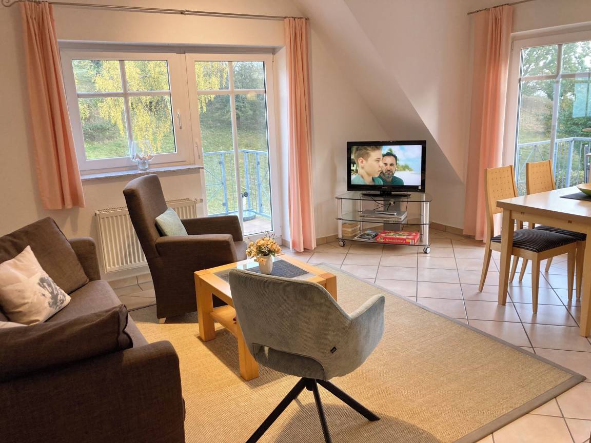 Die traumhafte, ruhige Lage am Rand des mondänen Ostseebades Göhren verspricht einen entspannten und geruhsamen Urlaub. Direkt hinter den Häusern öffnet sich die sanfte, für die Halbinsel Mönchgut so typische, mit saftig grünen Schafweiden bedeckte Hügellandschaft. Direkt dahinter öffnet die tiefblaue Weite der Ostsee. Diesen einmaligen Ausblick können Sie von der Wohnung auch direkt von Ihrem eigenen Balkon aus genießen.