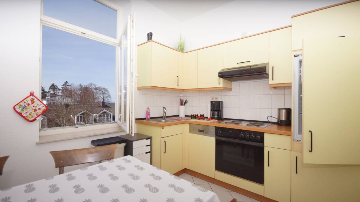 In der Ferienwohnung befindet sich eine separate, gut ausgestattete Küche mit Spülmaschine, Kühlschrank und 4-Platten-Kochfeld. Zahlreiche Küchenutensilien eröffnen Ihnen die Möglichkeit, einen tollen Kochabend zu verleben.