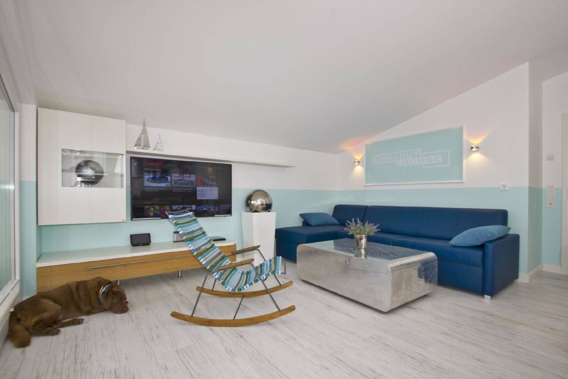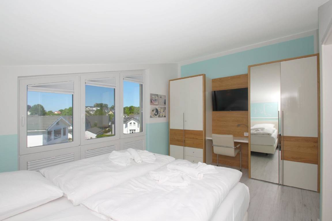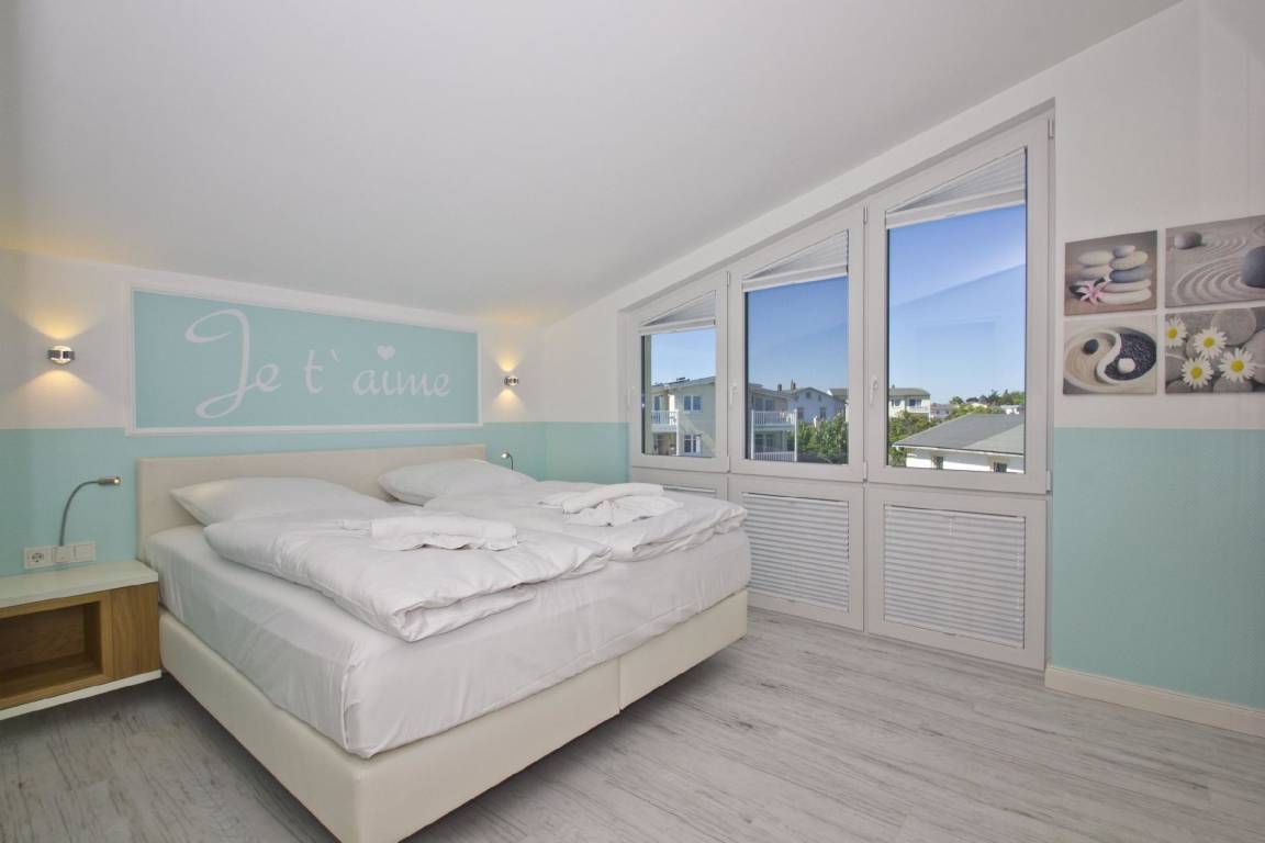 Die Ferienwohnung Nr. 67 deluxe in den Meeresblick Residenzen bietet auf 83 m² Platz für bis zu 4 Personen. Diese luxuriöse 3-Raum-Wohnung besticht durch einen traumhaften Meerblick und befindet sich im zweiten Obergeschoss. Der großzügige Wohnbereich ist mit einer bequemen Couch und einem Essbereich ausgestattet, während ein Kino-Soundsystem für Unterhaltung sorgt. In der gut ausgestatteten Küchenzeile finden sich ein Induktionsherd, eine Spülmaschine, ein Kühlschrank mit Gefrierfach, ein Backofen, eine Mikrowelle sowie weitere Küchengeräte. Die Wohnung verfügt über zwei gemütliche Schlafzimmer, beide mit Doppelbetten und Flachbild-TV. Die beiden luxuriösen Badezimmer sind mit Walk-In-Duschen, einer Eckbadewanne und WC ausgestattet. Kostenloses WLAN, ein PKW-Stellplatz und ein abschließbarer Fahrradschuppen runden das Angebot ab.
