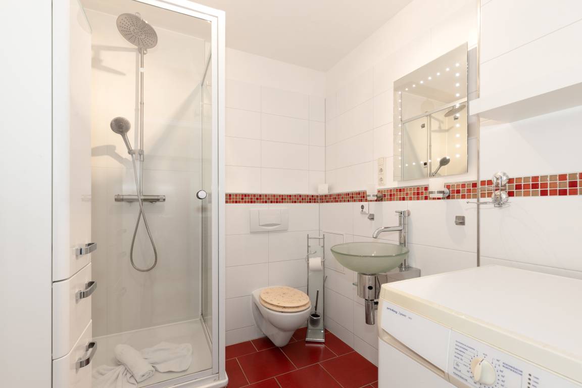 Weitere Annehmlichkeiten sind eine Waschmaschine, die auch bei längeren Aufenthalten von Nutzen sein kann, sowie die Möglichkeit, einen Hund mitzubringen. Auf dem Balkon kannst du gemütliche Stunden verbringen und die frische Luft genießen. Deine Fahrräder kannst du sicher im abschließbaren Fahrradraum unterbringen. Auch für Familien ist die Ferienwohnung geeignet.