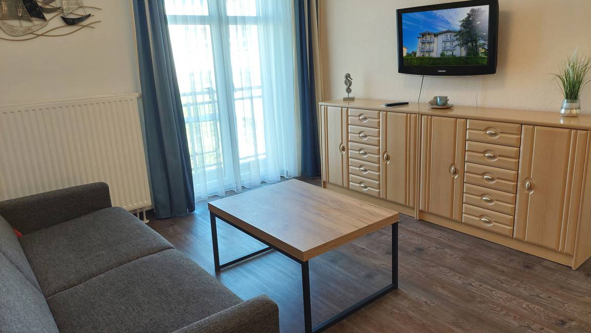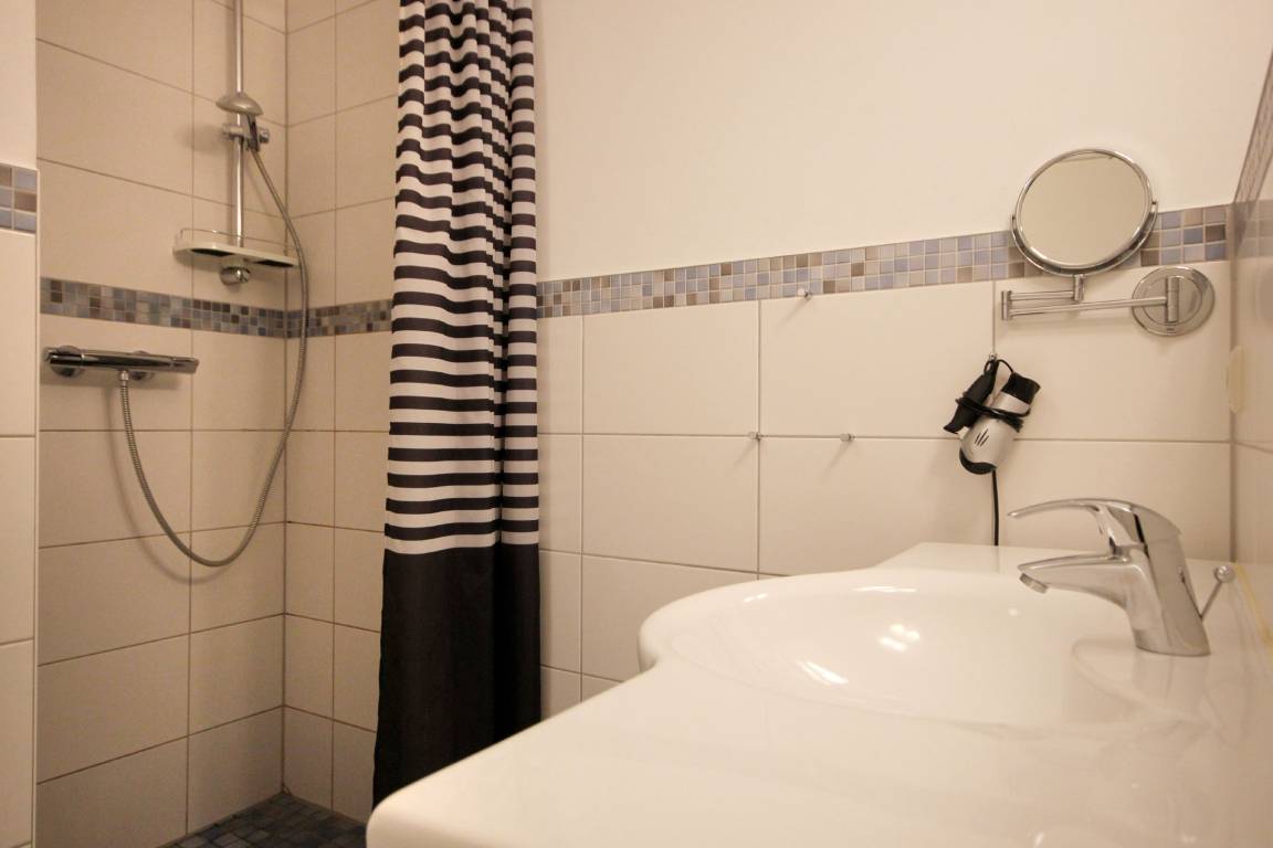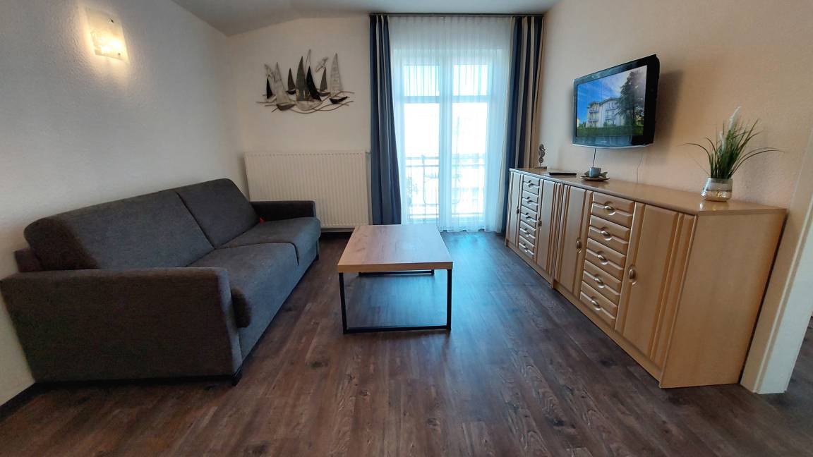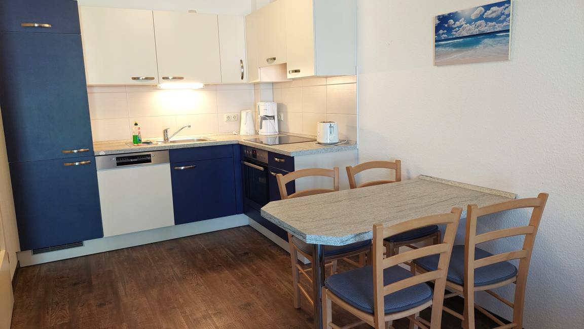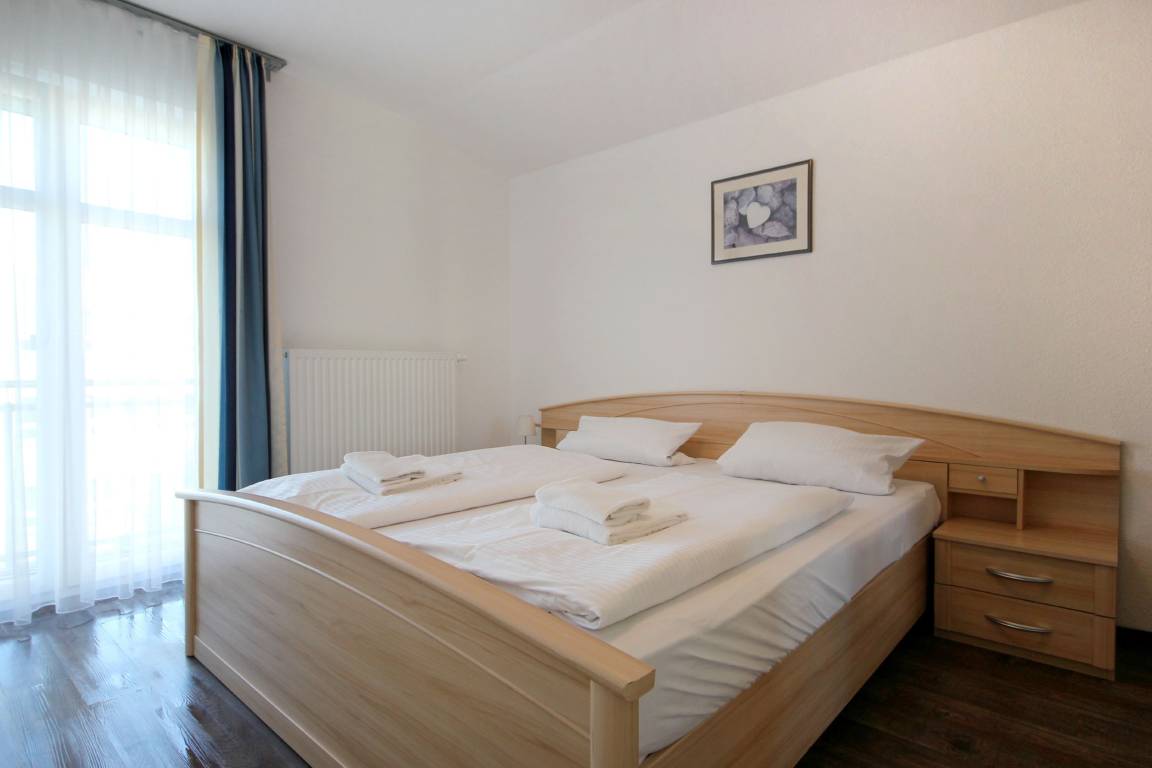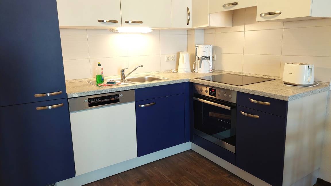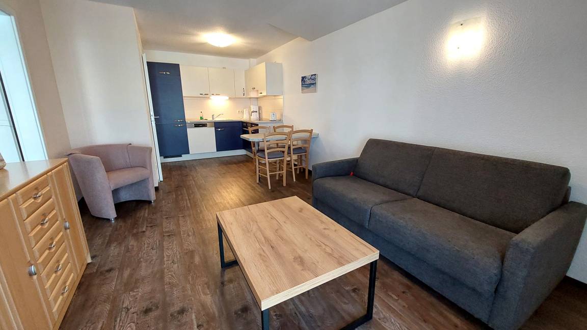 Diese freundliche Wohnung ist aufgeteilt in einen Wohnraum mit französischem Balkon und integrierter Küchenzeile, ein Schlafzimmer ebenso mit Zugang zum Balkon und ein Duschbad mit Waschtisch und WC. Das Wohnzimmer begrüßt Sie mit einem Schlafsofa und Sessel sowie Flachbild-TV. Das Schlafzimmer verfügt über ein Doppelbett (1,80m x 2m) sowie einen Kleiderschrank. Die Küchenzeile ist mit Backofen, Geschirrspüler, Cerankochfeld, Kühlschrank mit kleinem Gefrierfach, Cerankochfeld, Mikrowelle, Kaffeemaschine, Wasserkocher und Toaster ausgestattet. Highlights: Kostenfreies WLAN sowie ein frei wählbarer PKW-Stellplatz direkt am Haus.