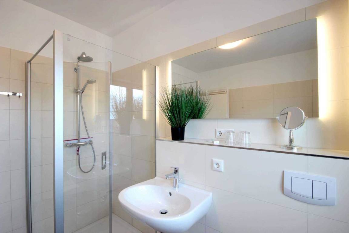 Über eine Treppe gelangen Sie in das Obergeschoss des Hauses mit 3 separaten Schlafzimmern. Hier erwarten Sie himmlische Träume in 2 gemütlichen Boxspringbetten und einem Standard-Doppelbett. In jedem Schlafraum befinden sich 1-2 Kleiderschränke. 2 Schlafräume haben einen weiteren Flachbildfernseher (43 Zoll). Ein Schlafzimmer verfügt über den direkten Zugang zum Balkon. Auf dieser Etage befindet sich nicht nur ein weiteres Tageslicht-Bad mit Dusche, Badewanne, Waschtisch und WC, sondern auch eine hauseigene Infrarotsauna (Münzbetrieb).