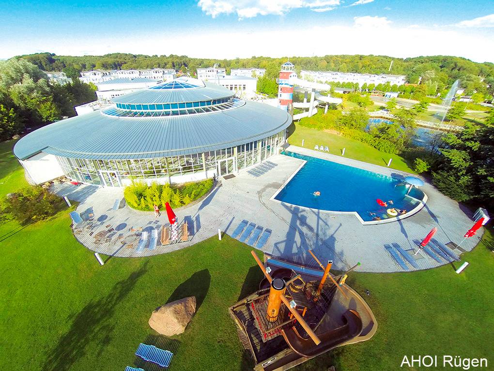 Ort: Ostseebad Göhren. Zentrale, verkehrsberuhigte Lage nahe der Strandpromenade. Ostseestrand 300 m. Bade- und Erlebniswelt "Ahoi Rügen" mit 600 qm Wasserflächen (außen & innen), Kinderbecken, Rutsche, Saunalandschaft, Dampfbad, Whirlpools, Restaurants 6 km.