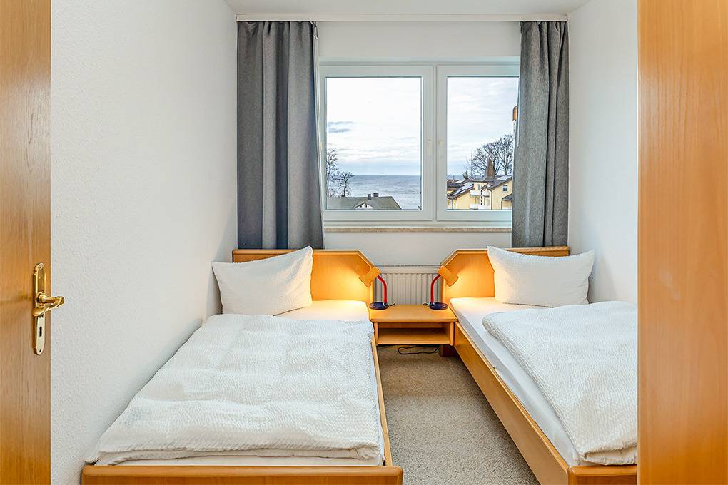 D 93.60 Wohnung 2-4 Pers.: 3-Zimmerwohnung, 65 qm Wohnfläche, 3. Etage. Wohn-/Essraum mit Couchgarnitur, Sat-TV, DVD-Player, Radio, Esstisch, moderner Küchenzeile (Ceran-Herd, Backofen, Mikrowelle, Spülmaschine). Doppelzimmer. 2-Bettzimmer mit Einzelbetten. Bad/WC. 2 Balkone mit Sitzmöbeln, herrlichem Ostseeblick.