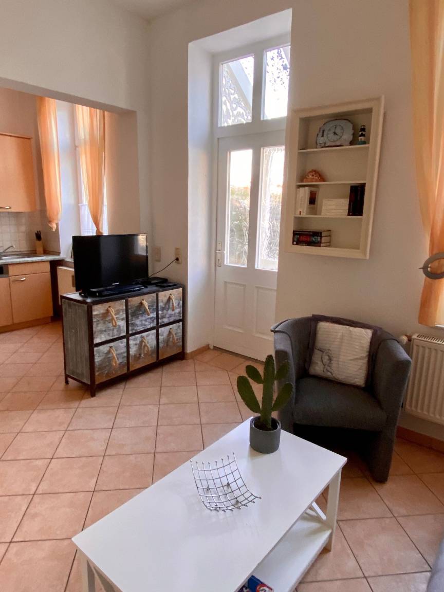Willkommen in der Ferienwohnung "Klabautermann" – Ihrer großzügigen Wohlfühloase in der charmanten Villa Speranza in Göhren. Auf 60 m² finden hier bis zu 5 Personen bequem Platz – ideal für Familien, Freunde oder alle, die gerne mehr Raum zum Entspannen haben.