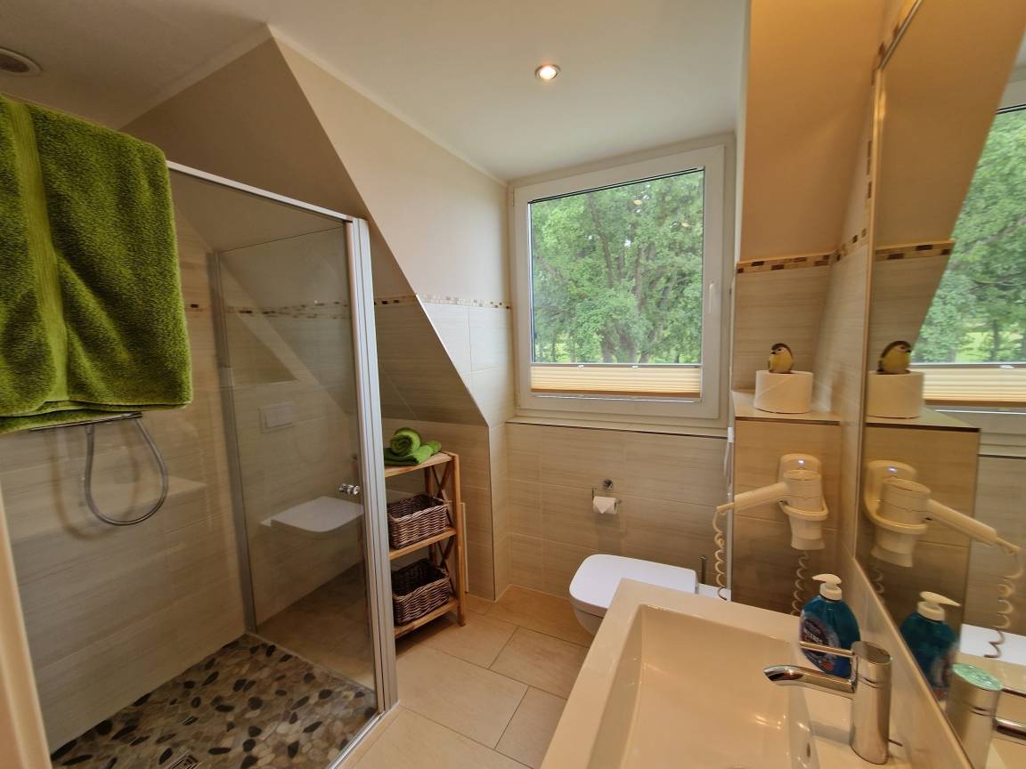 Das Familienfreundliche Haus liegt ruhig am Ortsrand von Göhren Lebbin direkt am Golf Platz .