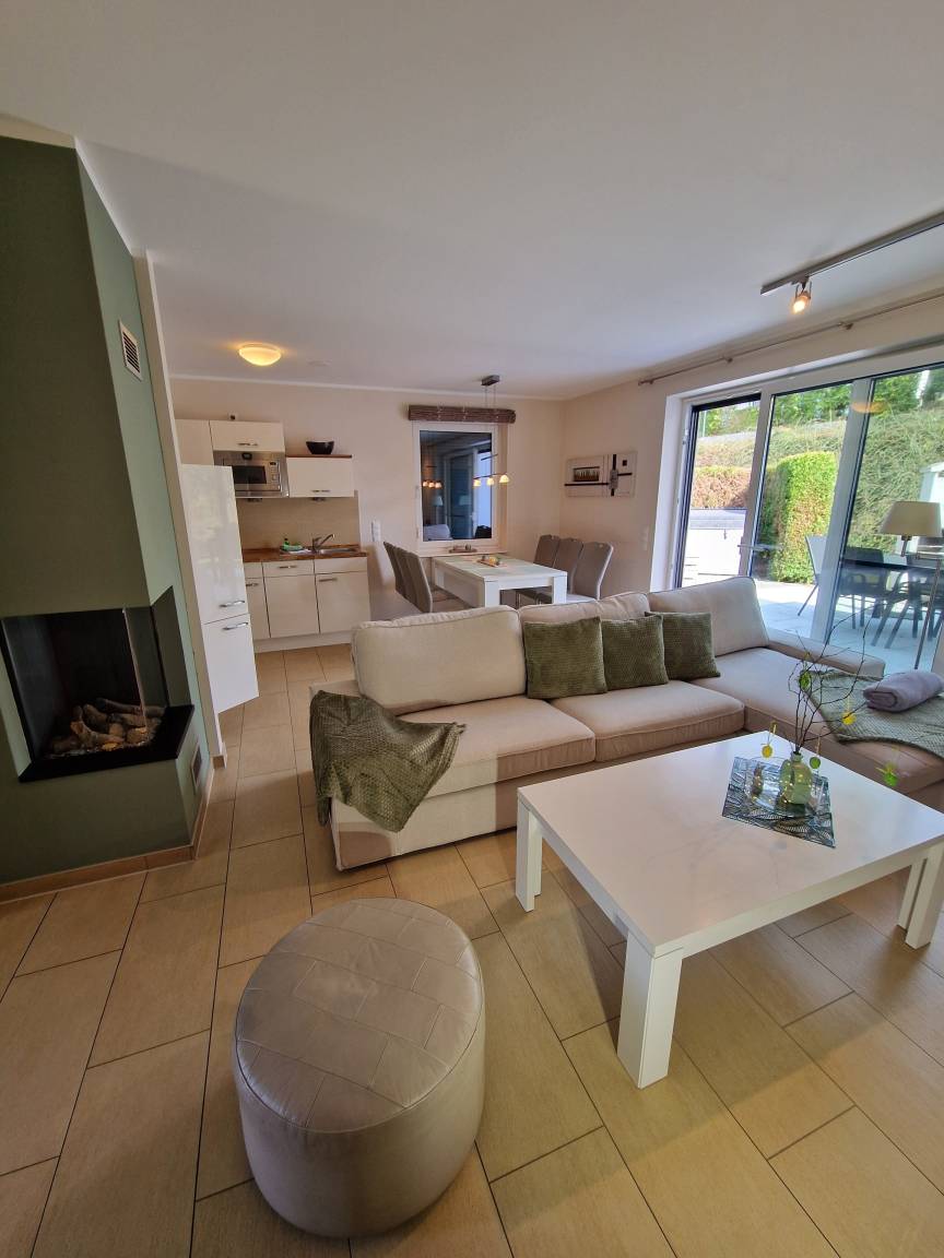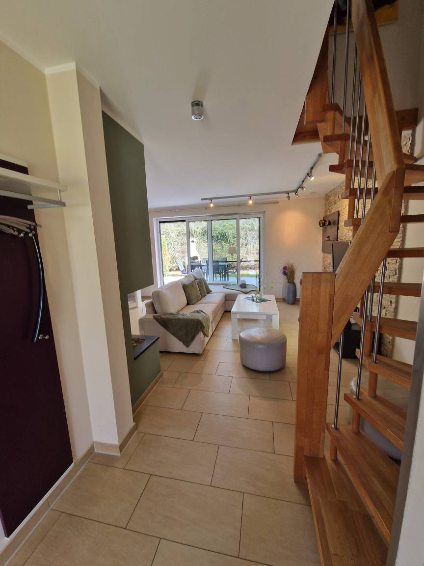Im Außenbereich befindet sich ein Außen Whirlpool der bis zu 38 Grad beheizbar ist und auch im Winter keinerlei Wünsche für Wellness und Entspannung offen lässt, auf der Terrasse können Sie entspannt Frühstücken oder Ihren Abend am Grill ausklingen lassen. Im EG befindet sich ein großer gemütlicher Wohn-/Essbereich mit Essplatz, Sitzgruppe ,Kaminfeuer (Gas),Radio, Sat-TV eine voll ausgestattete Küche mit Backofen, Kühl und Gefrierschrank, Mikrowelle und vieles mehr. Ein Bad welches mit WC, Sauna und Dusche ausgestattet ist. Im OG gibt es 2 Schlafzimmer, jeweils mit einem Doppelbett sowie Fernseher und ein Bad mit WC und Dusche. Im Dachgeschoss befindet sich dann nochmal ein Schlafzimmer mit 2 Einzelbetten das gerne für die Kinder genutzt wir auch hier gibt es einen Fernseher. Für Ihren Aufenthalt haben wir eine Auswahl an DVDs , sowie Spiele und Bücher ( auch Kinderbücher ) zusammengestellt.