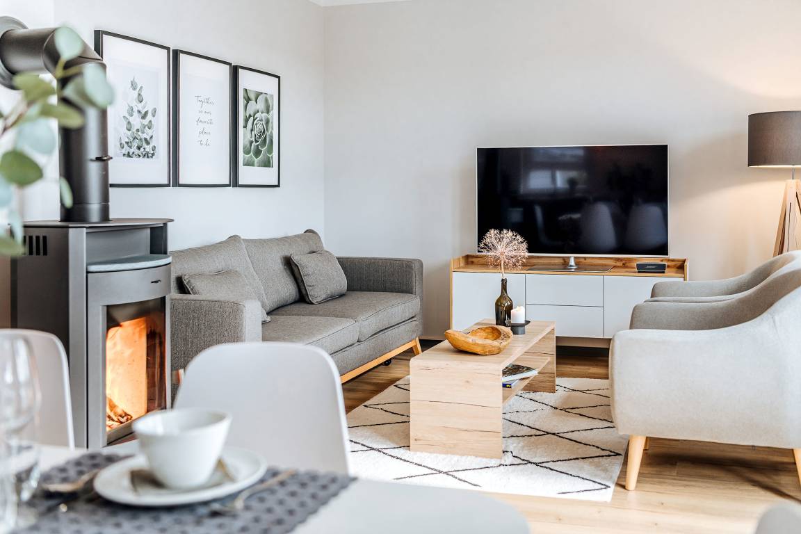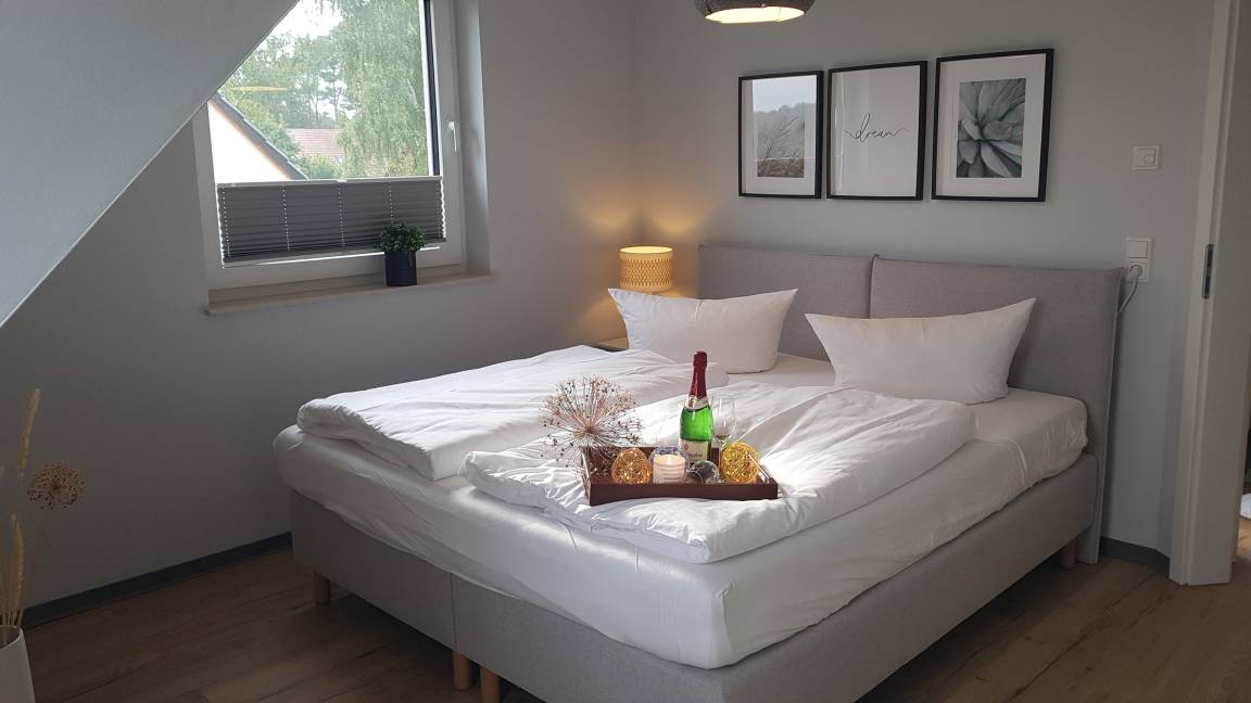 Die "Auszeit-Oase Heidi" verfügt über zwei separate Schlafzimmer, hat aber zusätzlich zwei Schlafmöglichkeiten durch die Schlaf-Couch im Wohnzimmer. So dass bis zu 6 Erwachsene oder zwei Paare mit zwei Kindern hier ihren Urlaub verbringen können.