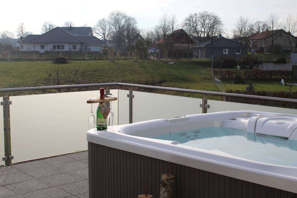 Das luxuriöse riesige Ferien-Appartement über 2 volle Ebenen eines Zweiparteienhauses lädt bis zu 6 Gäste plus Kleinkind zum Wellnessurlaub ein. Eine Dachterrasse mit Whirlpool, eine Sauna, ein gemütliches Beisammensein am Gaskamin, all das bieten diese Ferien(t)räume nahe am Golfgelände des Land Fleesensee