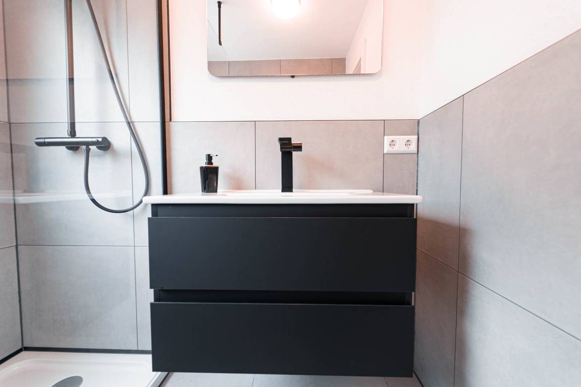 - tageslichtdurchflutetes Badezimmer mit Dusche