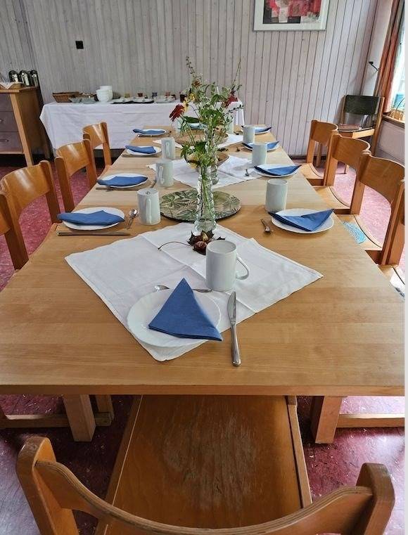 Dieses Zimmer verfügt über 2 getrennte Betten, welche man auch zusammenstellen kann. Ein Gemeinschaftsbad mit 2 Duschen und 2 Toiletten liegen auf der selben Etage, 2 weitere Bäder einen Stock tiefer.