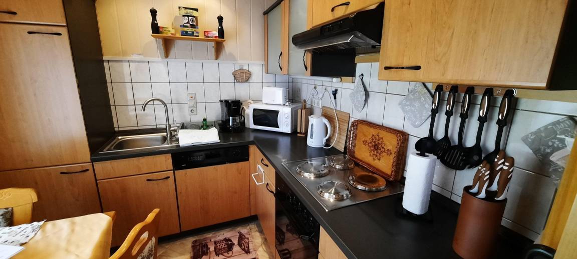 Geschirrspülmittel, Abwaschlappen, Spülschwamm, 2x Geschirrtücher und 2x Gästehandtücher sind im Mietpreis enthalten.