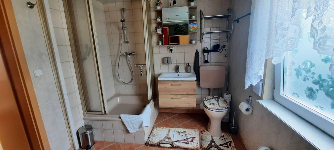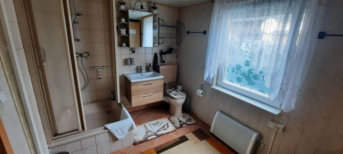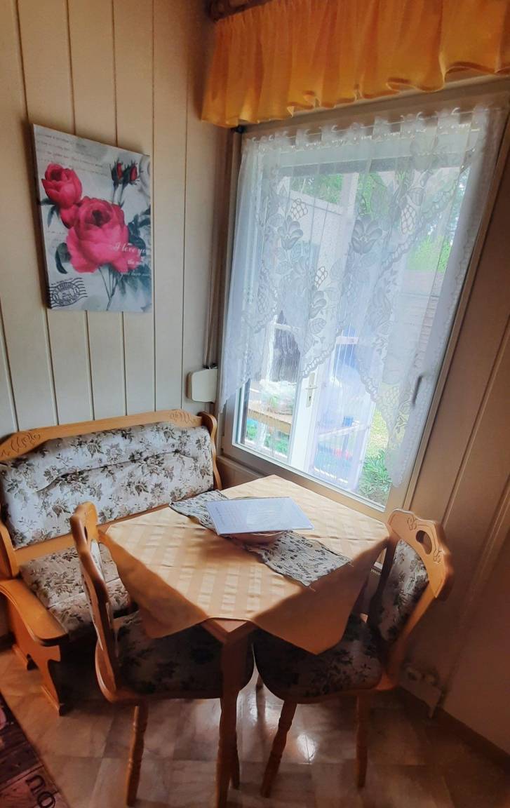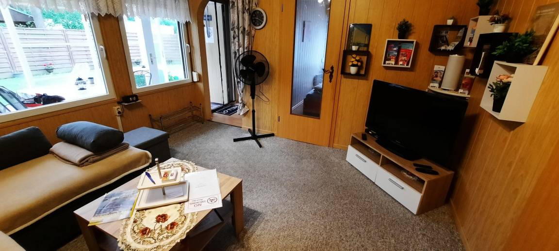 Das Ferienhaus besteht aus einem kleinen Flur mit Garderobe, Wohnzimmer mit Eck Schlafcouch, 2 Hocker, 1 Cocktailsessel sowie TV- mit Receiver, Amazon fire TV stick, Internet/WLAN und einer Infarot Heitzung, Schlafzimmer mit Doppelbett was Kopf / Fuß höhenverstellbar ist, Tageslicht Bad mit Dusche und WC und Küche komplett (ohne Geschirrspüler) ausgestattet mit Kochplattenherd + Backofen, Kühlschrank, Mikrowelle, Kaffeemaschine, Toaster, Wasserkocher und mit einer Sitzecke. Alle Zimmer haben Rollladen. Ein Baby Bett für unsere kleinen Gäste ist vorhanden.