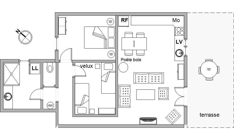 60 m² Gîte ∙ 2 Schlafzimmer ∙ 4 Gäste