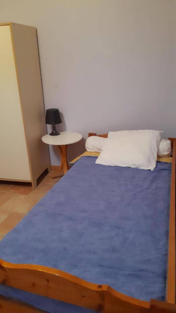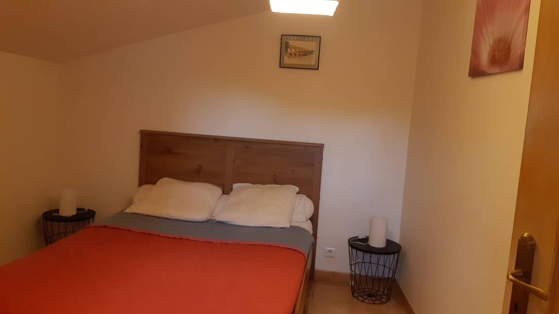 Erdgeschoss: ausgestattete Küche offen zum Wohnzimmer mit Ofen Holz, DVD, radio Kassette, 1 Zimmer mit 1 Bett 2 Betten (140cm), 1 Schlafzimmer mit 2 Einzelbetten 1 Platz (90cm) beleuchtet von Velux mit Speicher spiegeln, separater Dusche, wc. Elektroheizung und Holz (20 Euro 1/2 Hof Holz). Möglichen 5. Person mit Zuschlag.