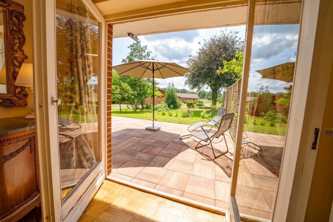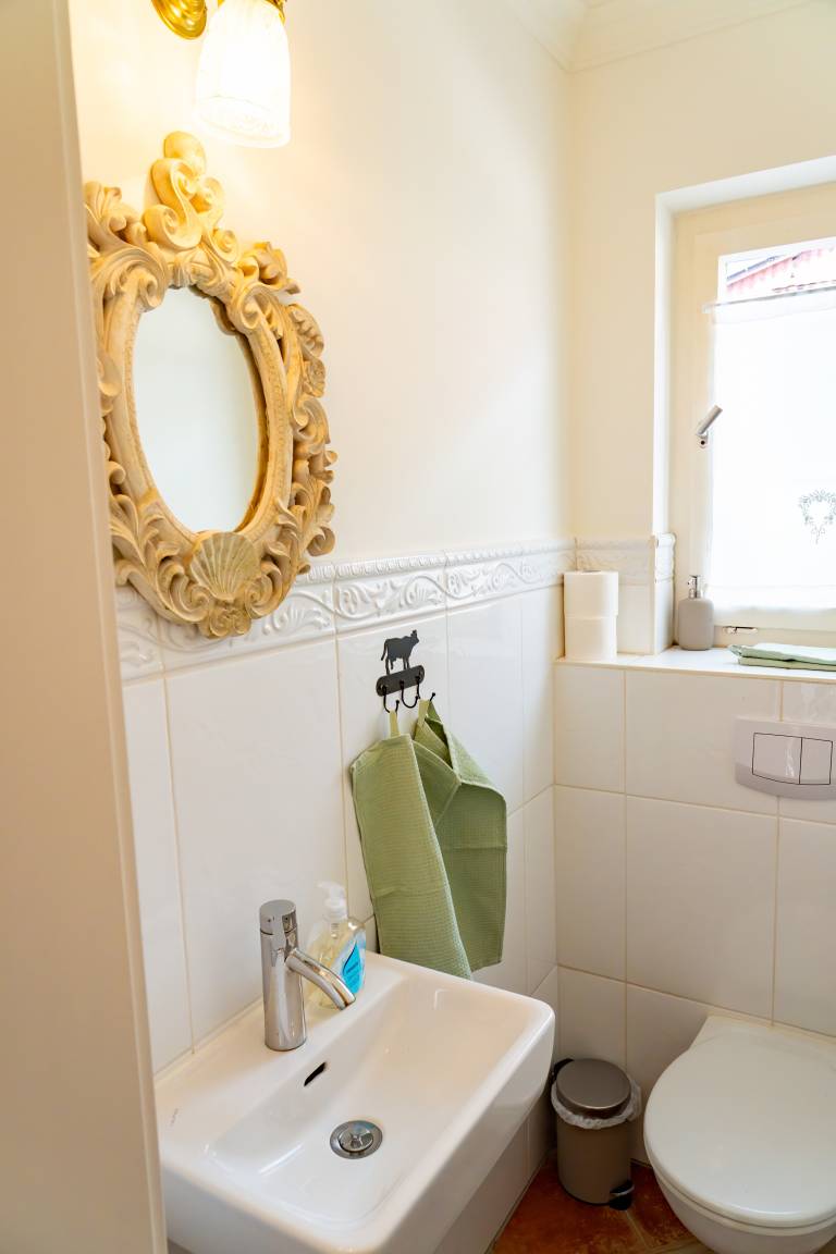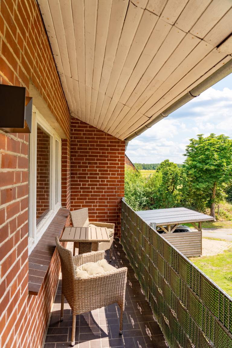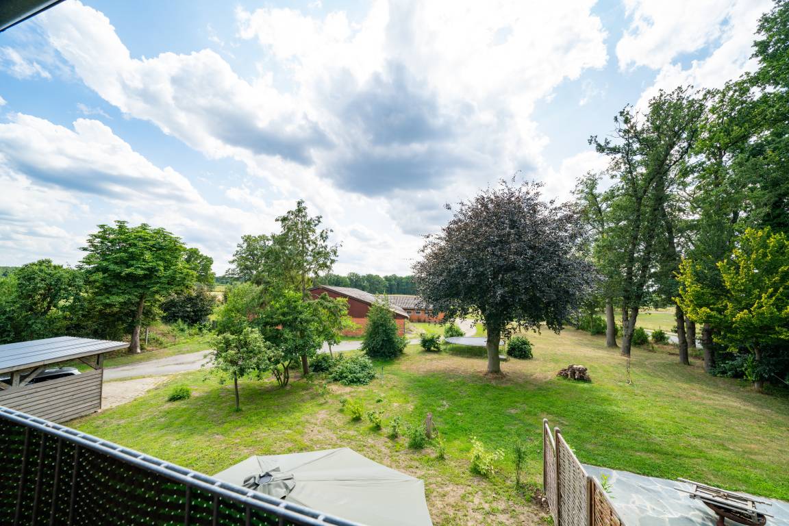 Von der großen Terrasse und dem Balkon blicken Sie ganz entspannt ins Grüne. Mit viel Liebe zum Detail und hochwertigen Antiquitäten eingerichtet, wurde hier auf großzügigen 120 qm ein Urlaubsparadies für Familien, Wanderer, Reiter, Jäger und Naturbegeisterte geschaffen.